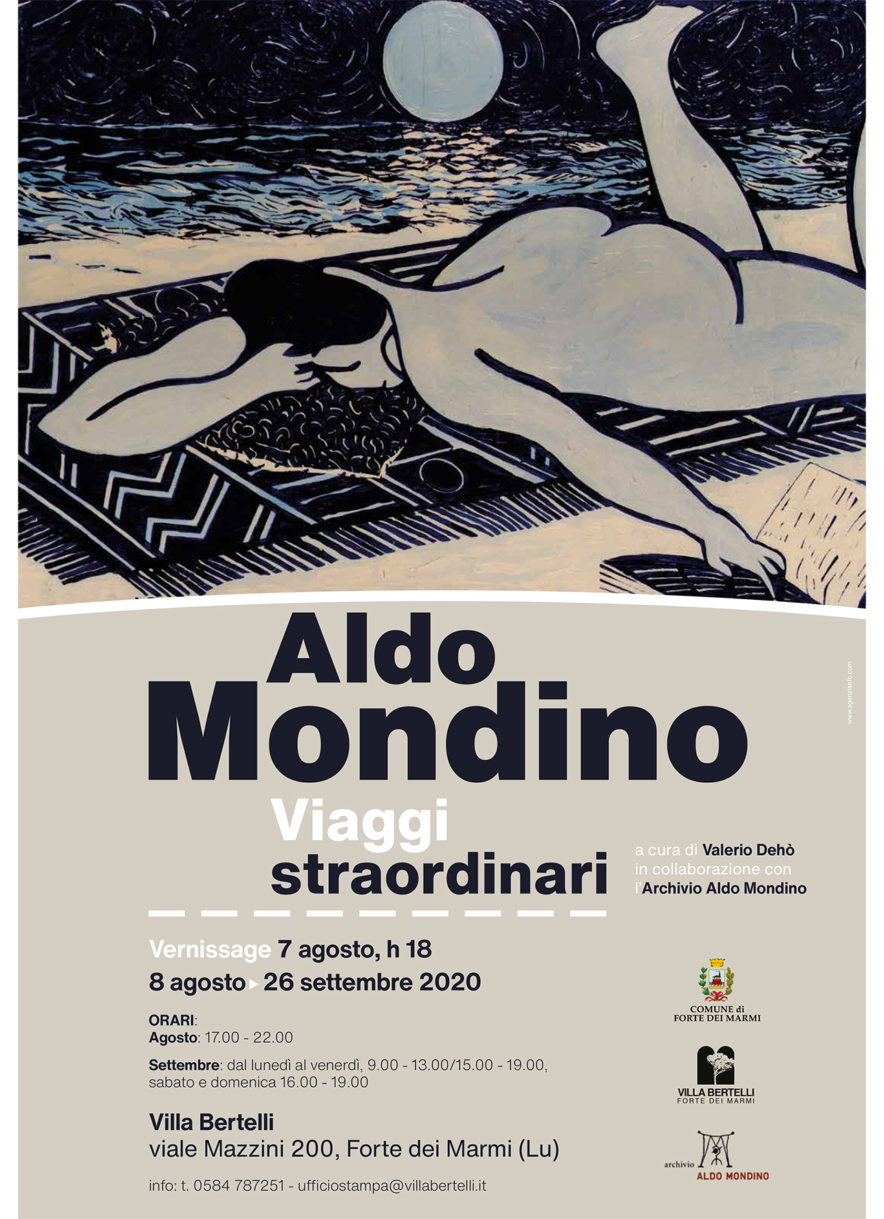Gli spazi ottocenteschi di Villa Bertelli a Forte dei Marmi (Lu) ospitano dal 7 agosto al 26 settembre 2020 la retrospettiva dedicata ai Viaggi straordinari di Aldo Mondino, a cura di Valerio Dehò. La mostra, promossa da Villa Bertelli con il patrocinio del Comune di Forte dei Marmi, in collaborazione con l’Archivio Aldo Mondino, sarà inaugurata venerdì 7 agosto alle ore 18.00.