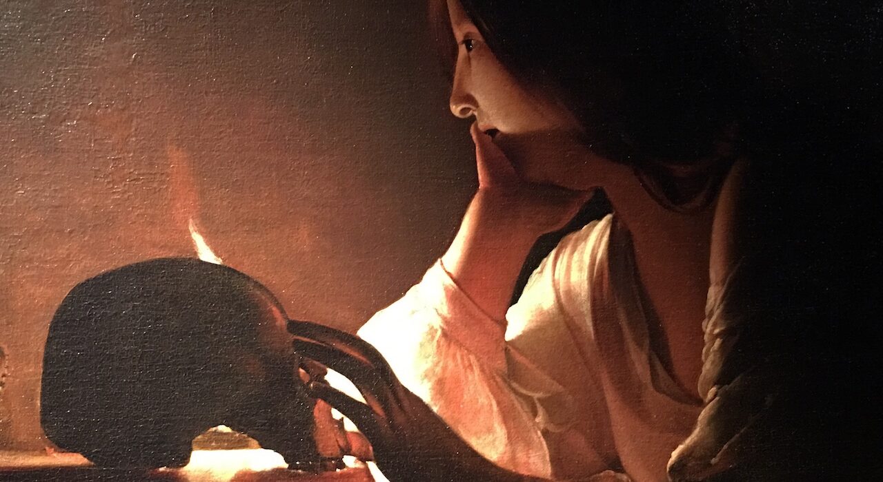 I chiaroscuri di La Tour sono molto diversi: amano i riverberi di lumi artificiali schermati (le candele) più che le luci naturali provenienti dalle finestre, e anno dopo anno le figure umane perdono i connotati naturalistici della precedente produzione per approdare a forme più sintetiche, quasi astratte, di sorprendente modernità. Si veda, ad esempio, nell’Educazione della vergine della Frick Collection di New York, al di là degli interventi successivi e delle ridipinture, la figura quasi novecentesca della bambina, la cui mano arde per il contatto con la candela senza che il suo volto abbandoni quell’imperturbabilità così frequente nei personaggi del pittore lorenese e così lontana dai drammi di Caravaggio. Come l’espressione della celebre Maddalena penitente di Washington in posa pensosa, il cui chiaroscuro è delicato come l’incarnato e la visione rifratta del teschio non annulla l’aria di meditazione e sospensione, che lo splendido effetto luministico della candela amplifica invece di contrastare.
