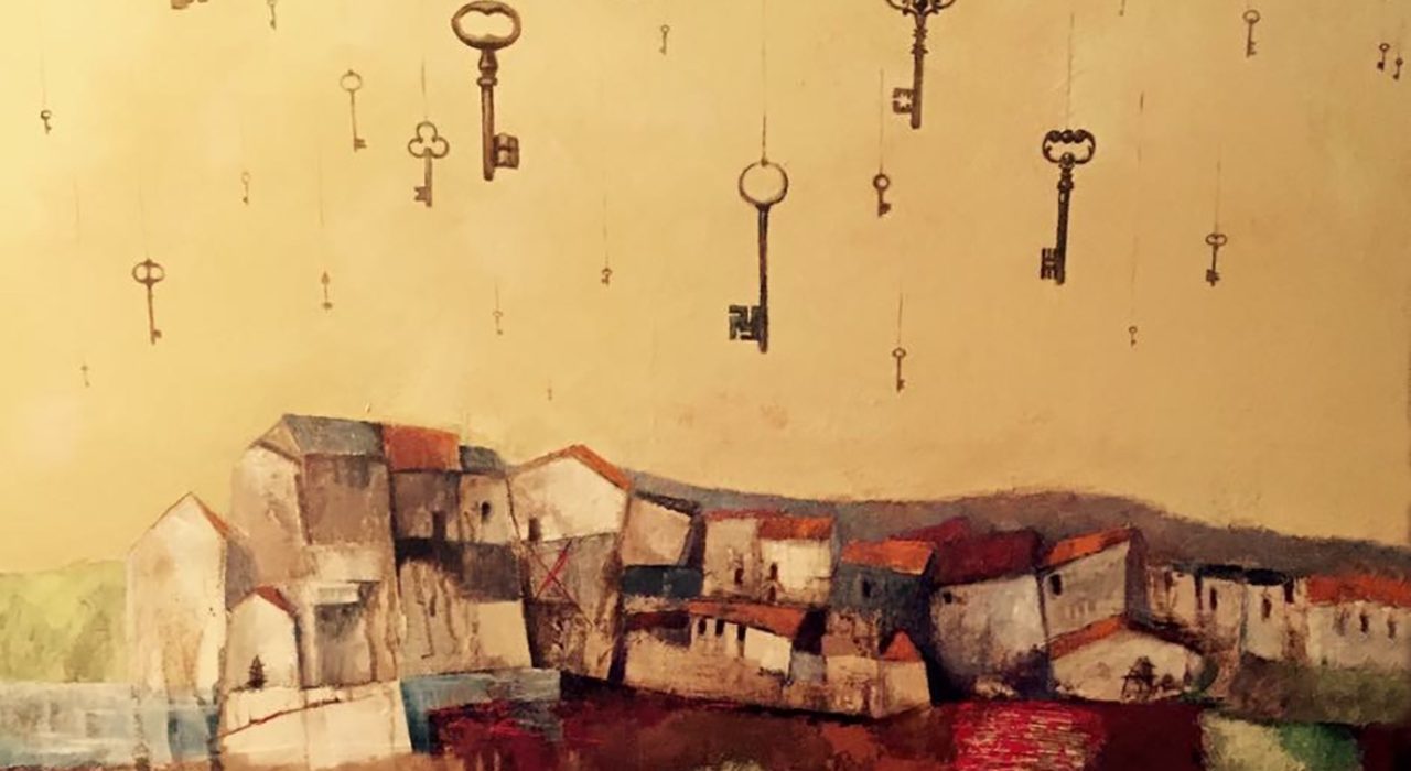 Donatella Violi, Ci vuole la chiave giusta (2016). Tecnica mista, cm 80×80