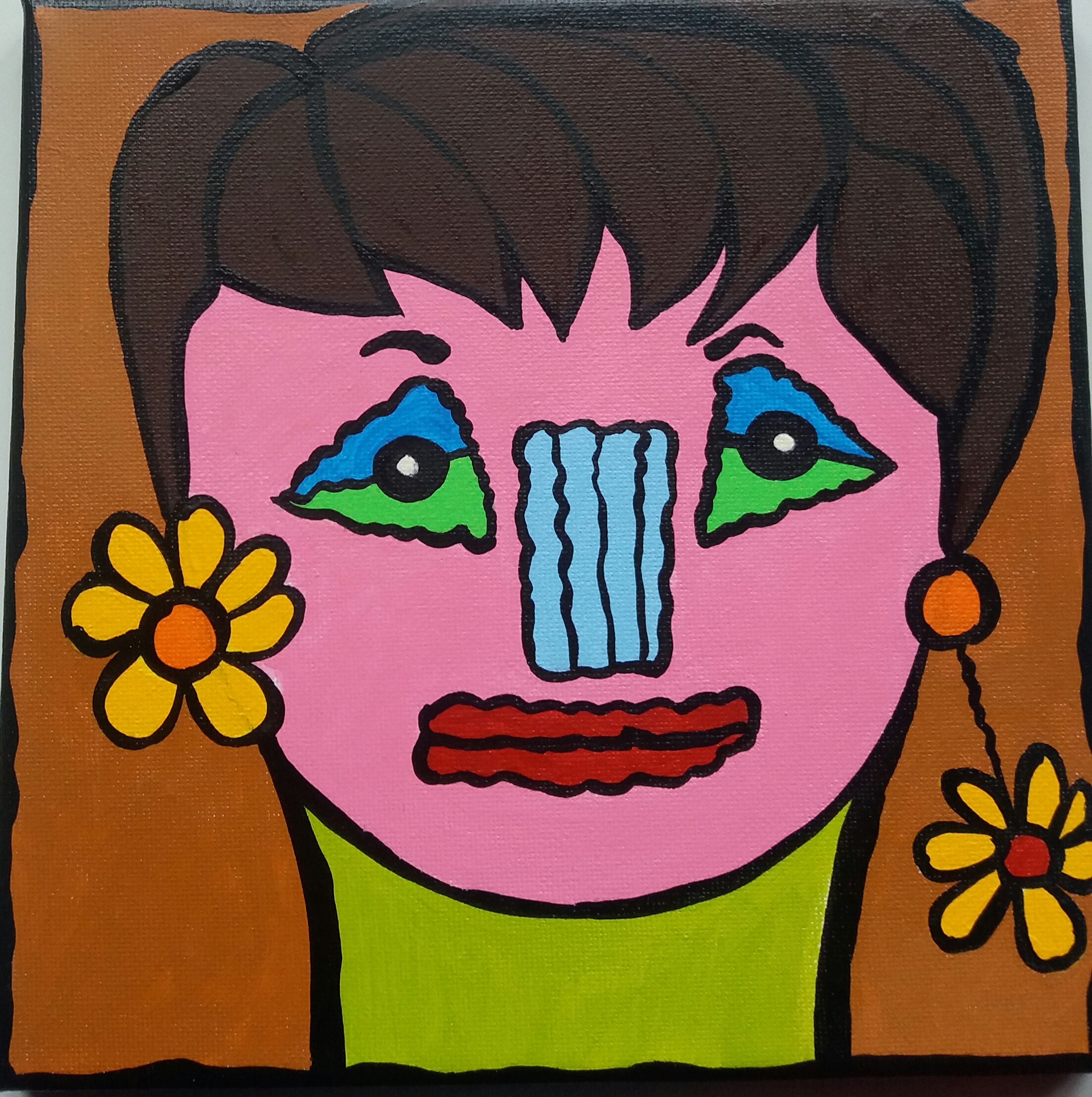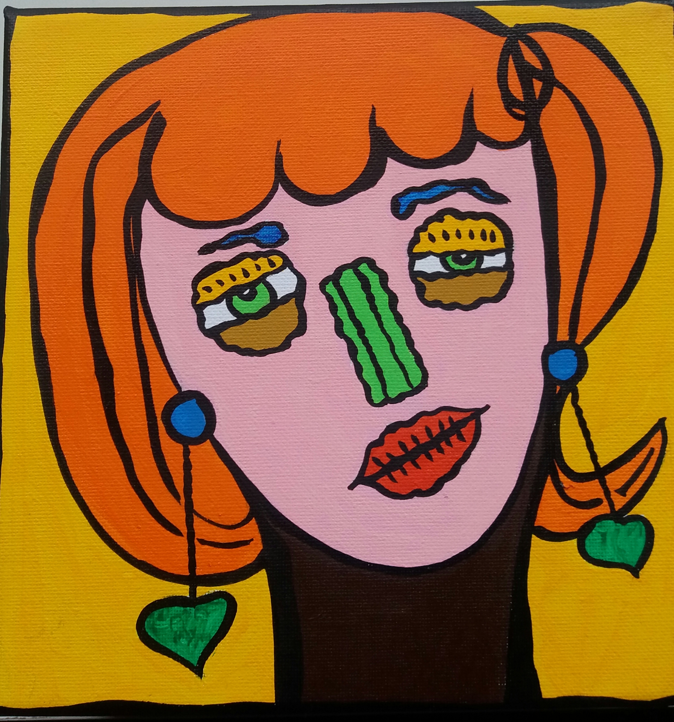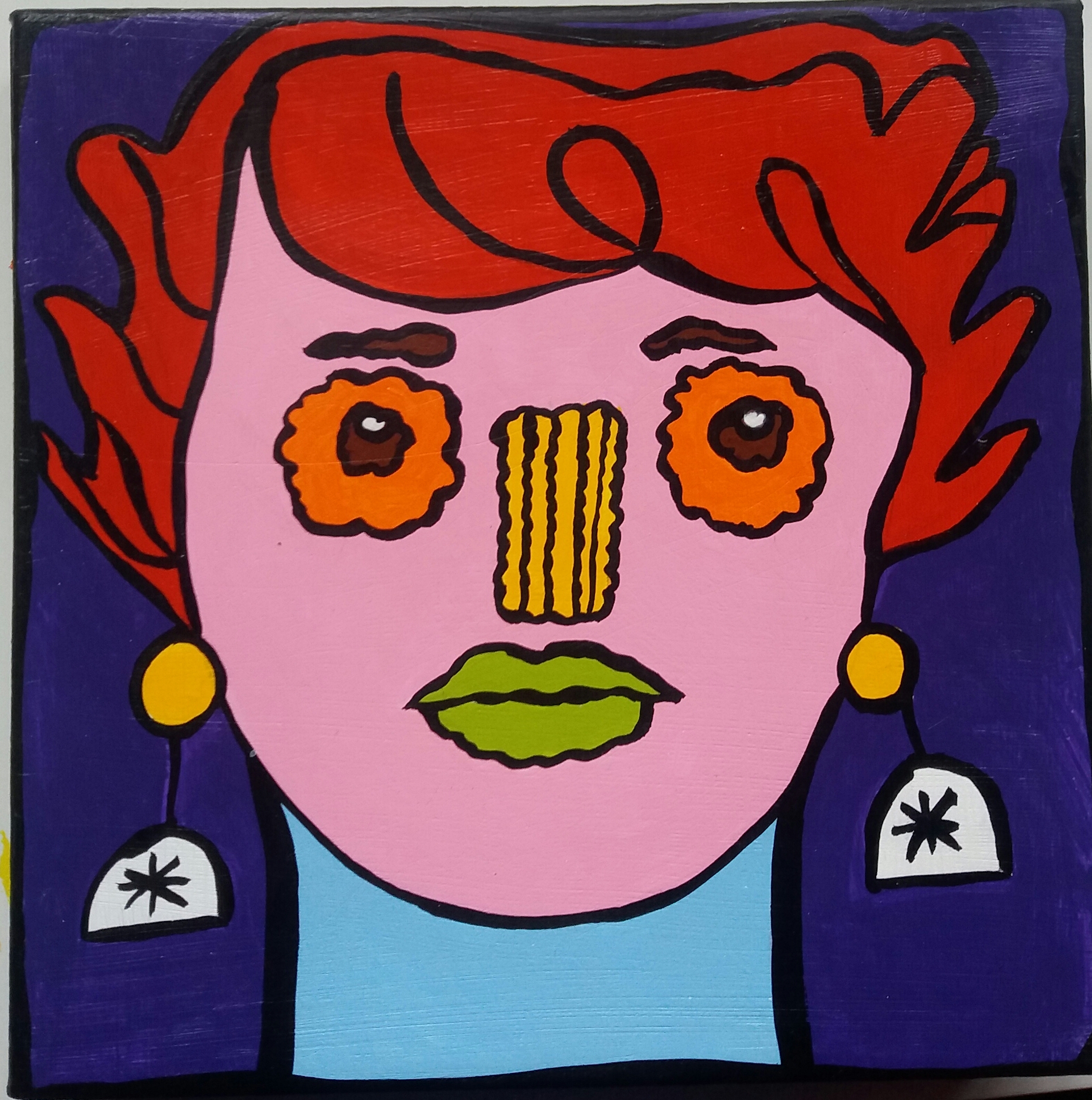 Ogni personaggio è definito con il suo preciso carattere distintivo di gioia o tristezza, smarrimento o impertinenza, forza o alienazione, ma gli elementi che compongono il viso, a sembianza di dolci di un’infanzia trascorsa, generano un ossimoro tra immagine rappresentata e carattere identitario dell’immagine stessa: i bucaneve per gli occhi, i rigoli al posto del naso, i capelli come glassa delle torte con le colorazioni artefatte dei gelati.