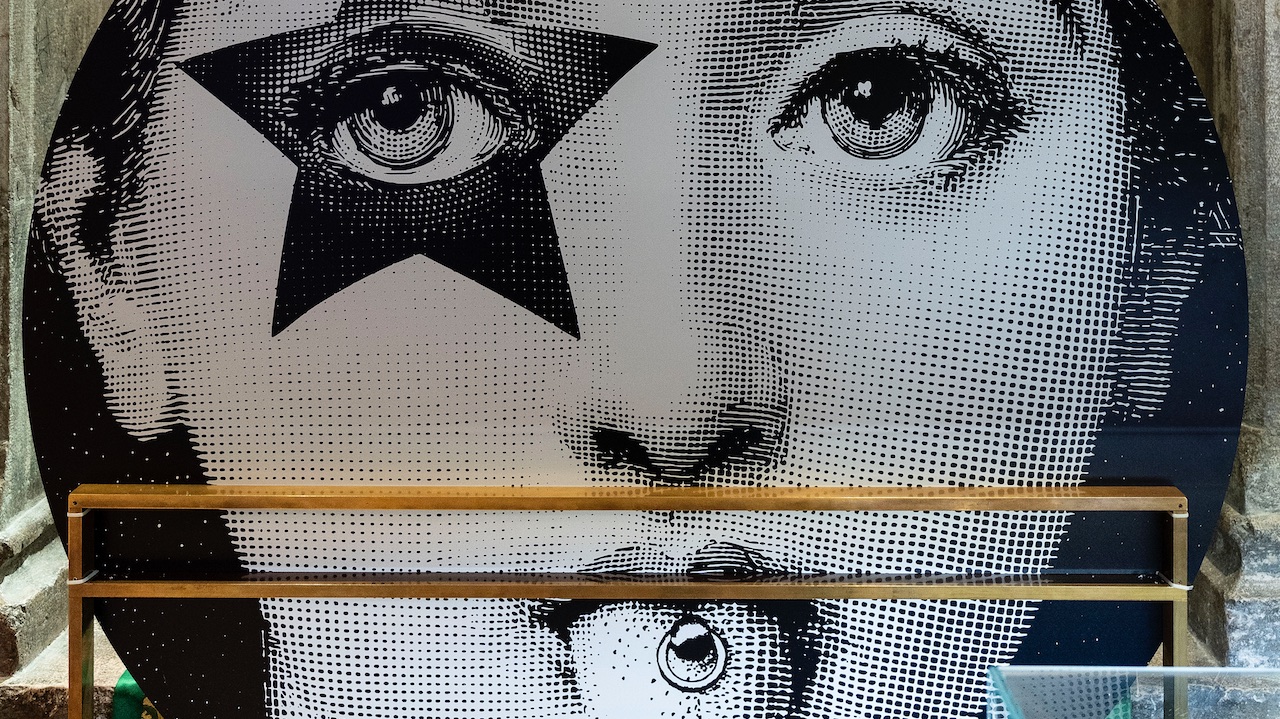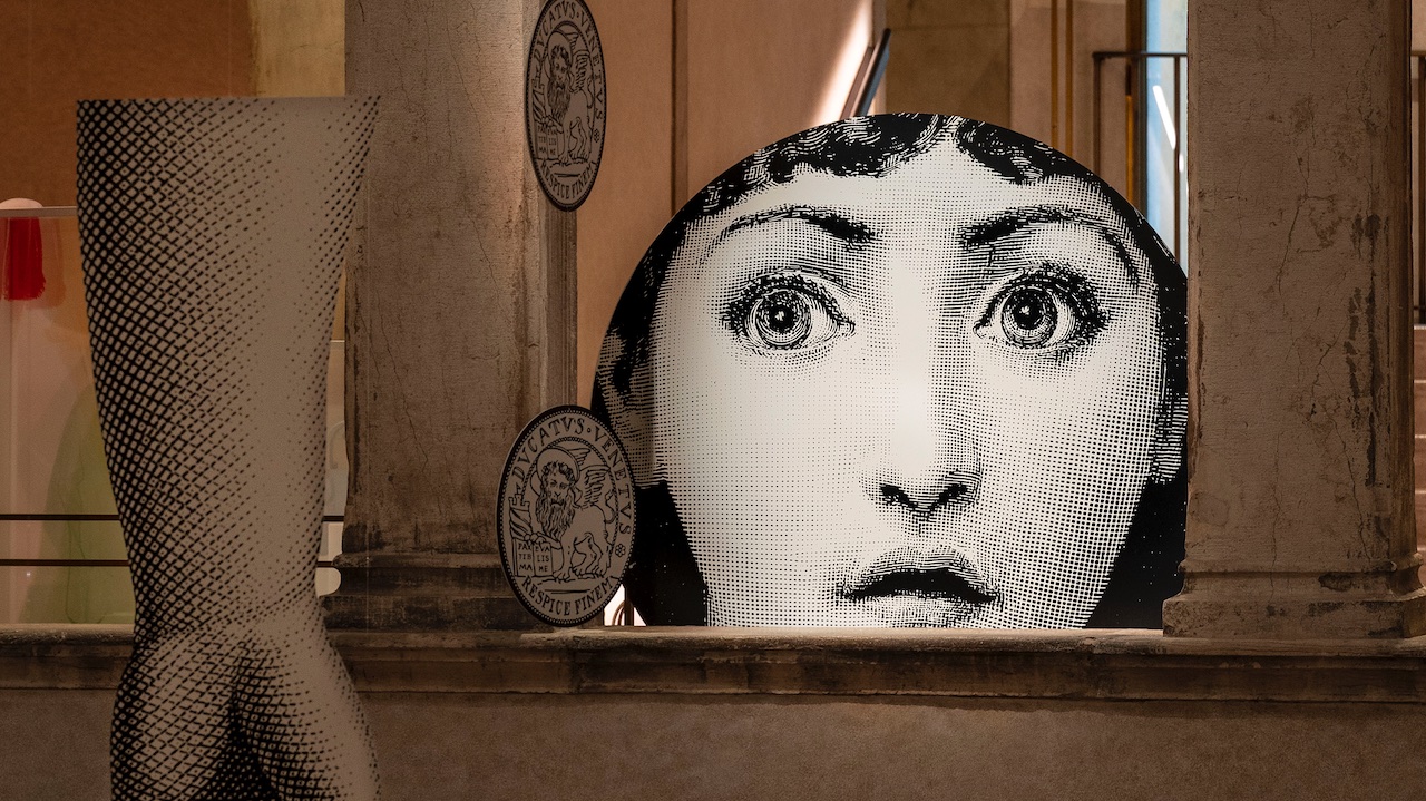 Secondo un analogo gioco di rimando e ribaltamento, di metissage tra codici ed epoche diverse, i volti femminili, riprodotti su grandi dischi e raffiguranti l’iconica musa fornasettiana Lina Cavalieri, omaggiano la bellezza struggente delle opere dei grandi Maestri veneziani, Giorgione e Tiziano, che nel Cinquecento trovavano spazio sulla facciata dell’edificio.