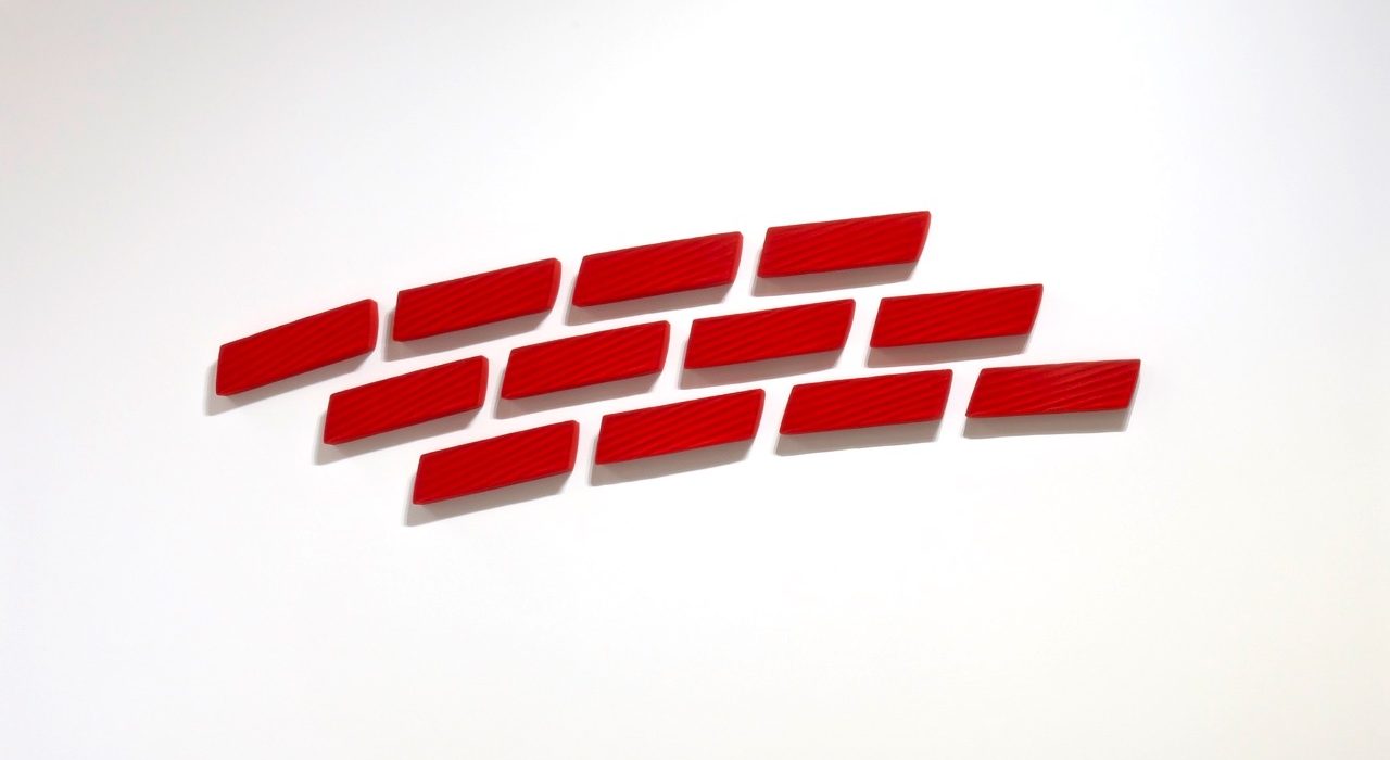 Agostino Bonalumi, Rosso (1972). Tela estroflessa e tempera vinilica, 80 x 69,5 cm. Collezione Intesa Sanpaolo, © AGOSTINO BONALUMI, by SIAE 2019