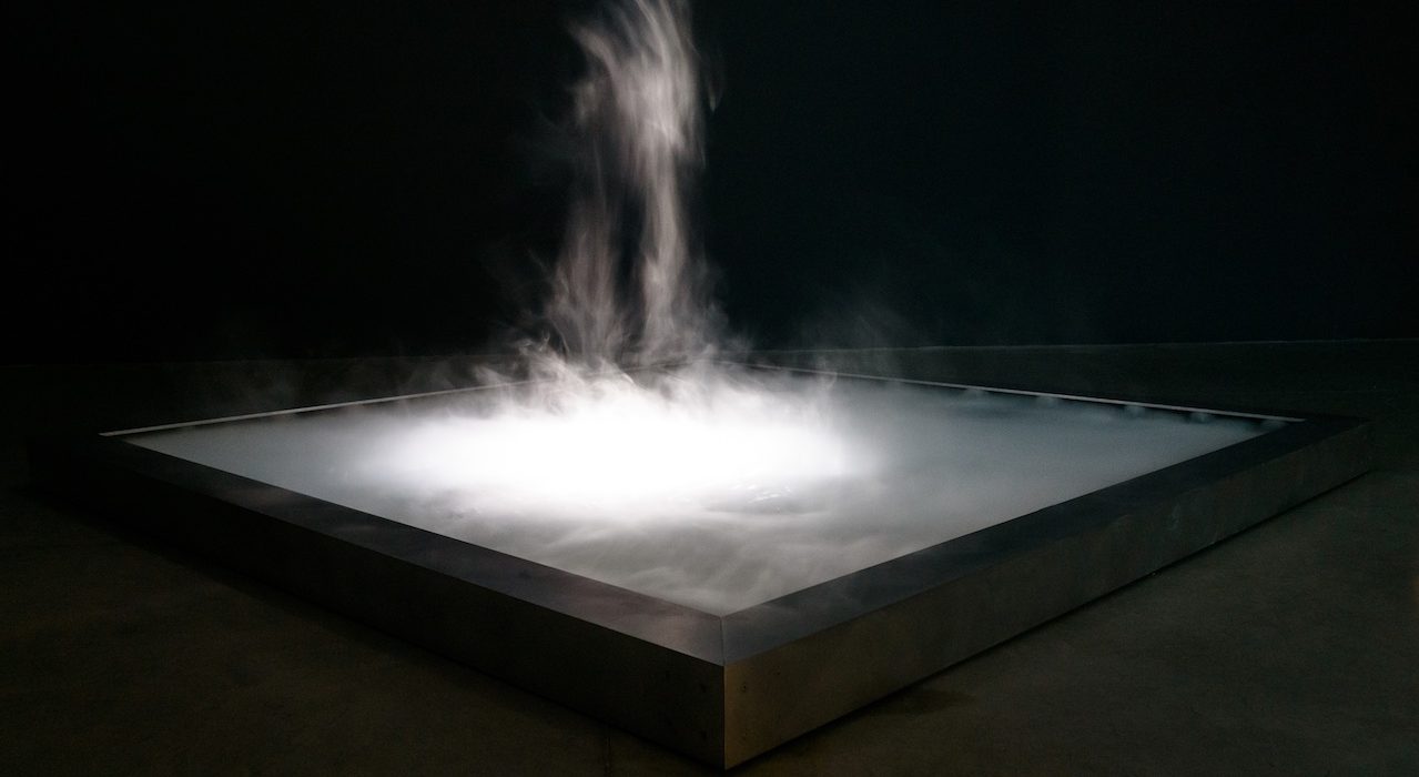 Julian Charrière, Somehow They Never Stop Doin What They Always Did (2019). Gesso arricchito con nutrienti, campioni d’acqua prelevati dai principali fiumi internazionali, teche in acciaio inossidabile con doppi vetri a clima controllato, 207 x 87,1 x 222,1 cm