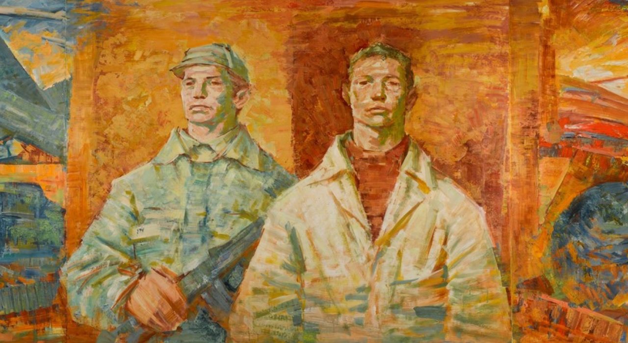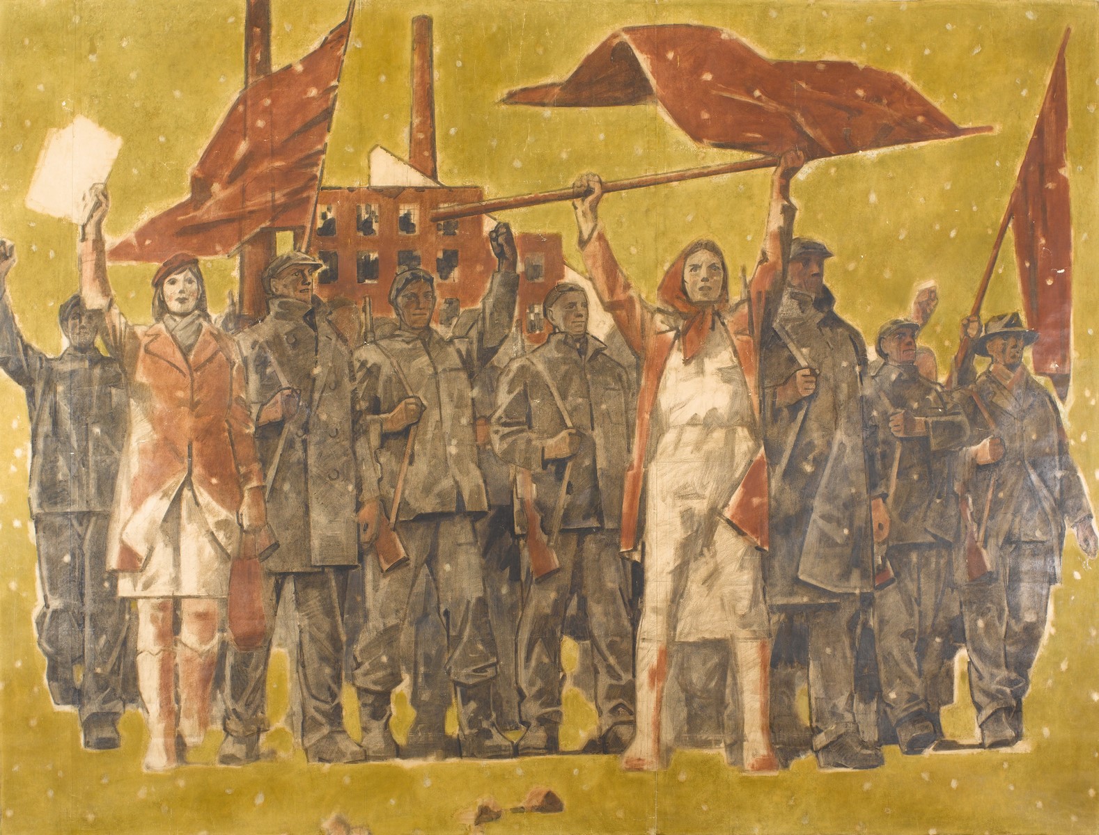 Adolf Zábranský, Febbraio 1948, cartone del Ciclo “Tradizione rivoluzionaria dei nostri uomini VI” 1972-81. Carboncino e guazzo su carta applicata su tela
