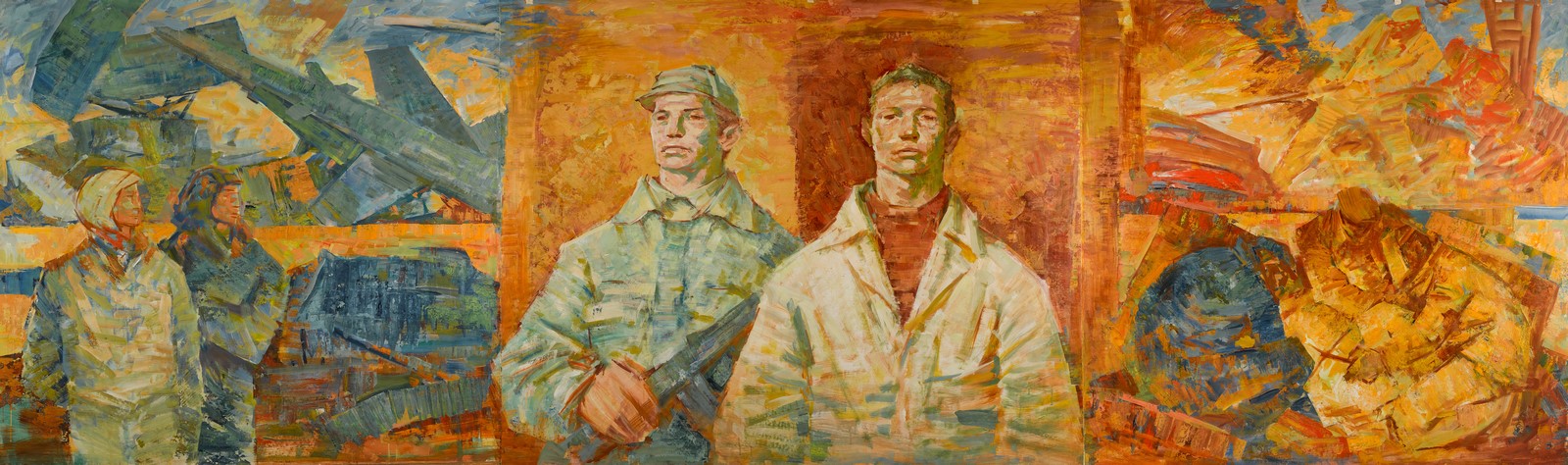Jaromír Schoř, senza titolo, trittico (anni ’70-’80). Olio e tempera su carta applicato su tela (dettaglio in cover)