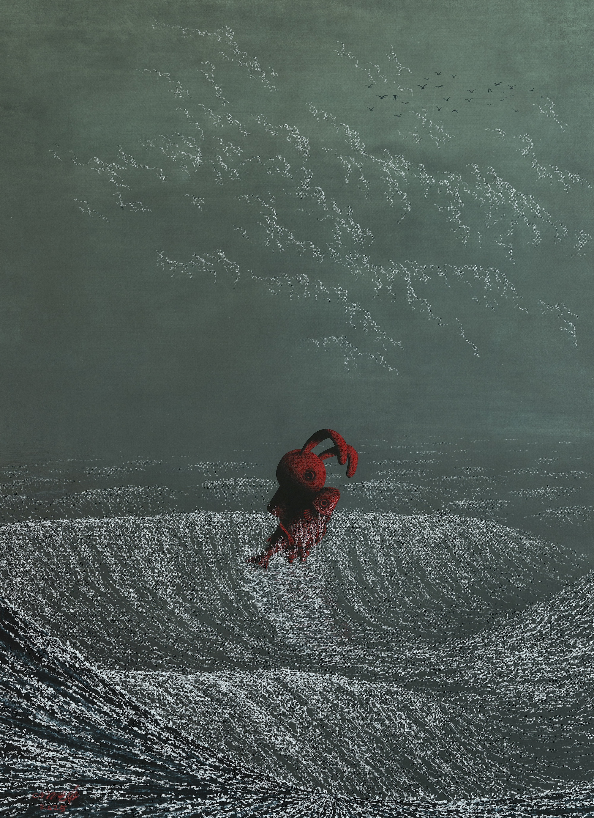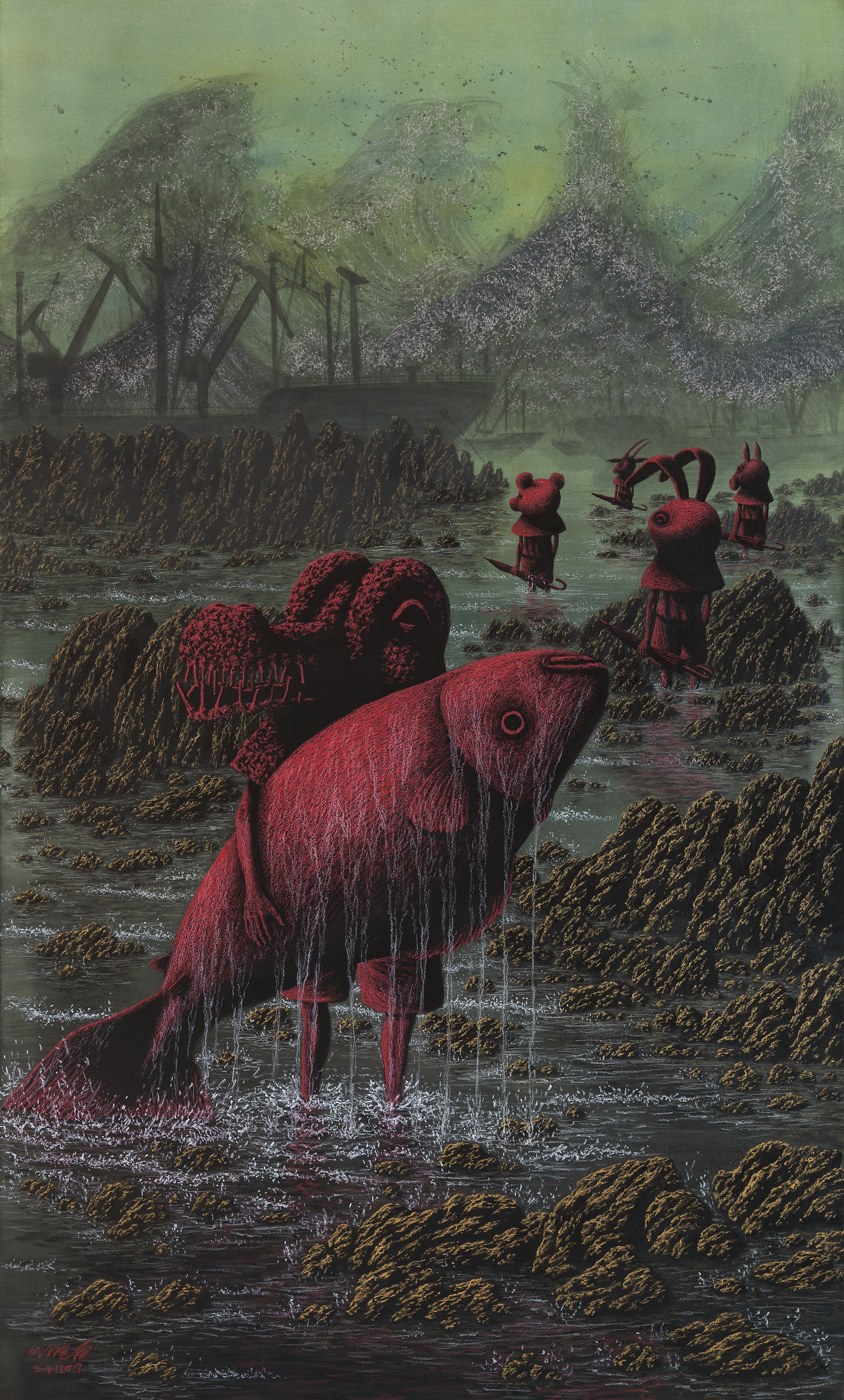 Lee Gihun, M Numinose 1. Acquerello e pastello a olio su carta di cotone. 97 x 163 cm, Courtesy of DCG and the Artist.