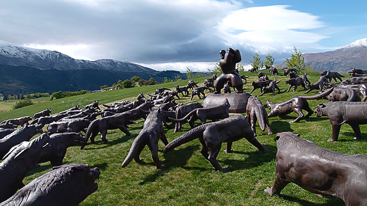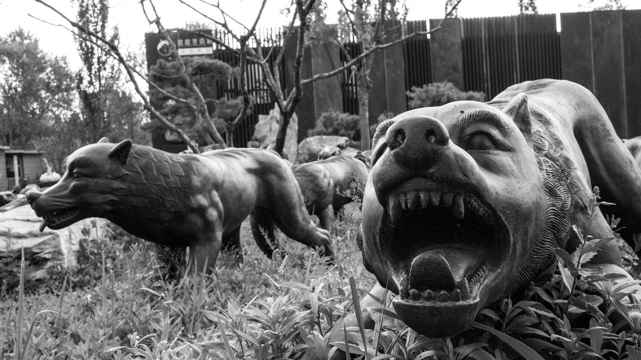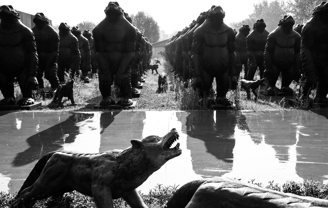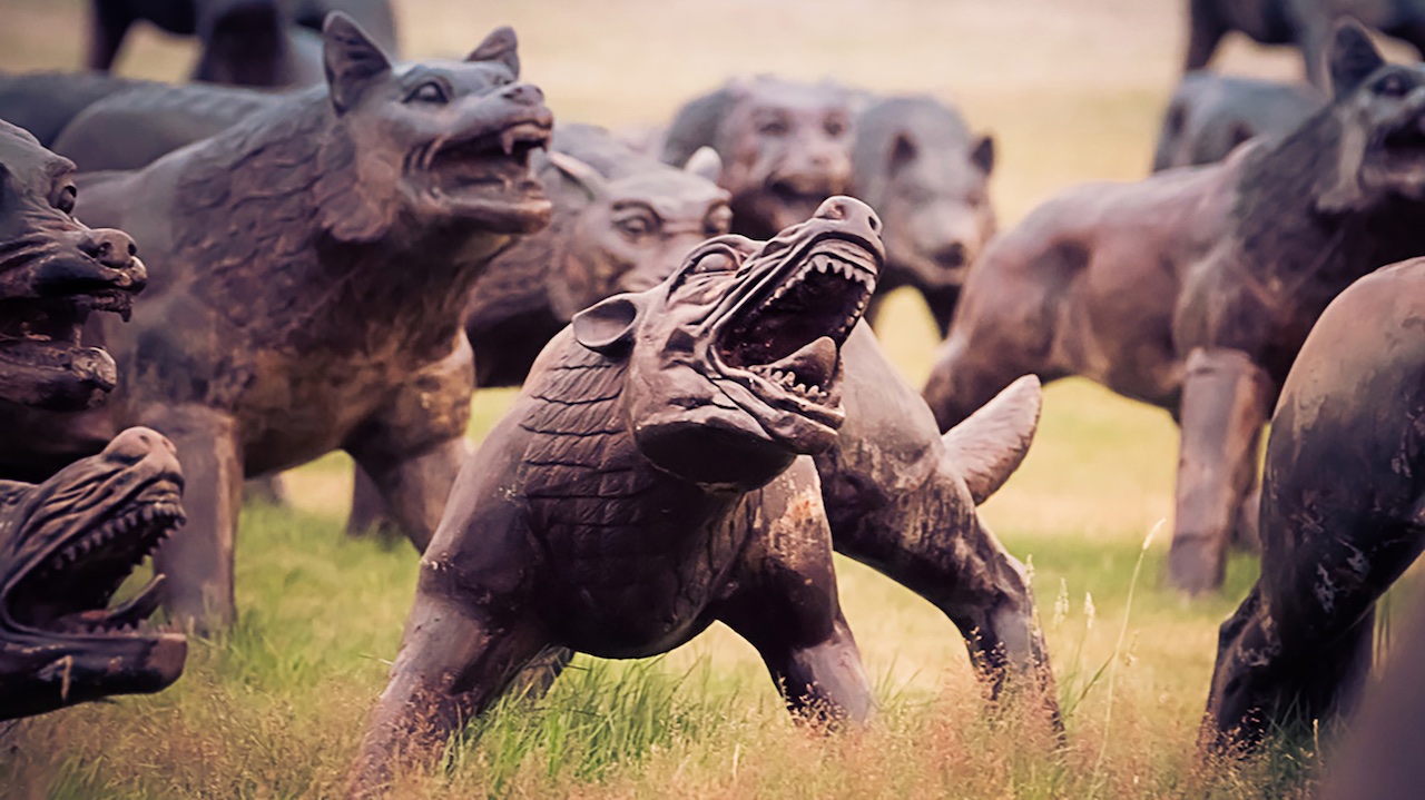 La piazza del Municipio di Napoli, cuore istituzionale della città, ospita dal 14 novembre la grandiosa opera di Liu Ruowang, trasformandosi in una grande galleria a cielo aperto. Un aggressivo branco di cento lupi – fusioni in ferro, ognuna del peso di 280 kg. – che minaccia un impotente guerriero è l’allegoria con cui l’artista cinese rappresenta la dura risposta della natura alle devastazioni compiute dall’uomo, stigmatizzando l’incontrollabile processo di antropizzazione dell’ambiente.