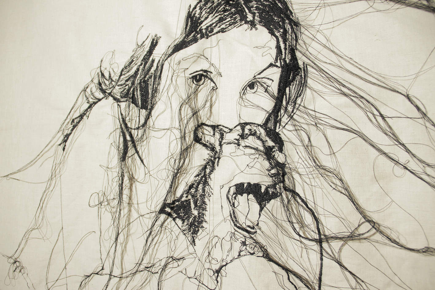 Lucia Bubilda Nanni, Rosa da Lima, trittico (2017). Canapa intelata lavorata a macchina da cucire, cm. 150×320, particolare #2. Photo credits Miriam Dessì