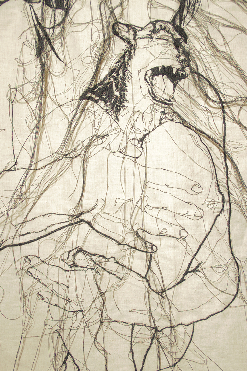 Lucia Bubilda Nanni, Rosa da Lima, trittico (2017). Canapa intelata lavorata a macchina da cucire, cm. 150×320, particolare #1, Photo credits Miriam Dessì