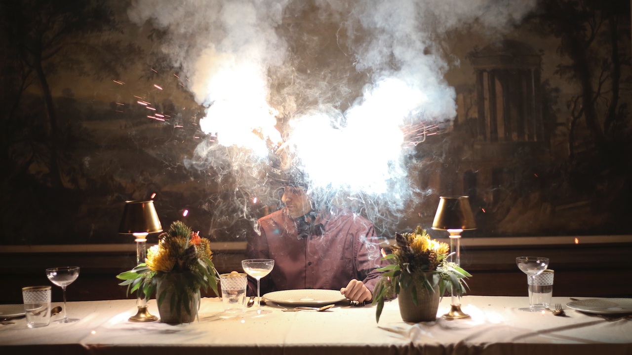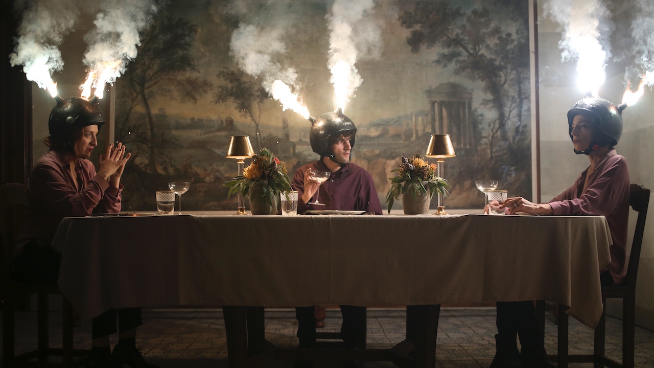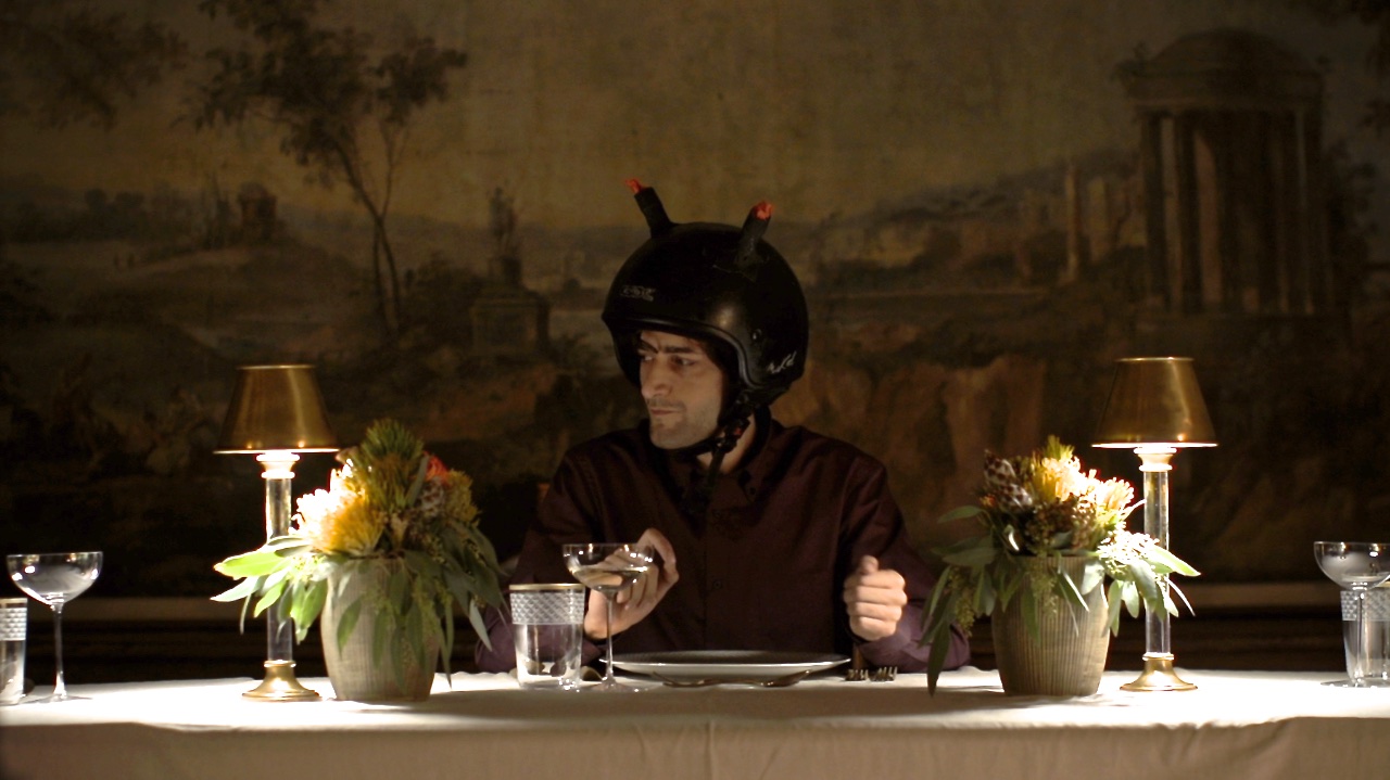 Nel video Teorema d’Incompletezza (2008) gli spari di un fucile fuoricampo distruggevano la scultura in cristallo posizionata su un tavolo immerso in un paesaggio artico, mentre in Ionesco Suite (2013) il tavolo e l’insieme di oggetti su di esso venivano travolti prima da una pioggia di coriandoli e poi da una colata di cemento. Se in queste opere precedenti l’elemento del tavolo è sempre stato svincolato dalla presenza umana, finalmente in Romans Roman (Hommage à Roman Signer) i MASBEDO la rendono figura centrale, mezzo attraverso cui rendere manifeste le pulsioni incontrollabili della mente e l’energia dirompente che invade lo spazio (gli attori chiamati per quest’opera sono Federica Fracassi, Emanuela Villagrossi e Maziar Firouzi).