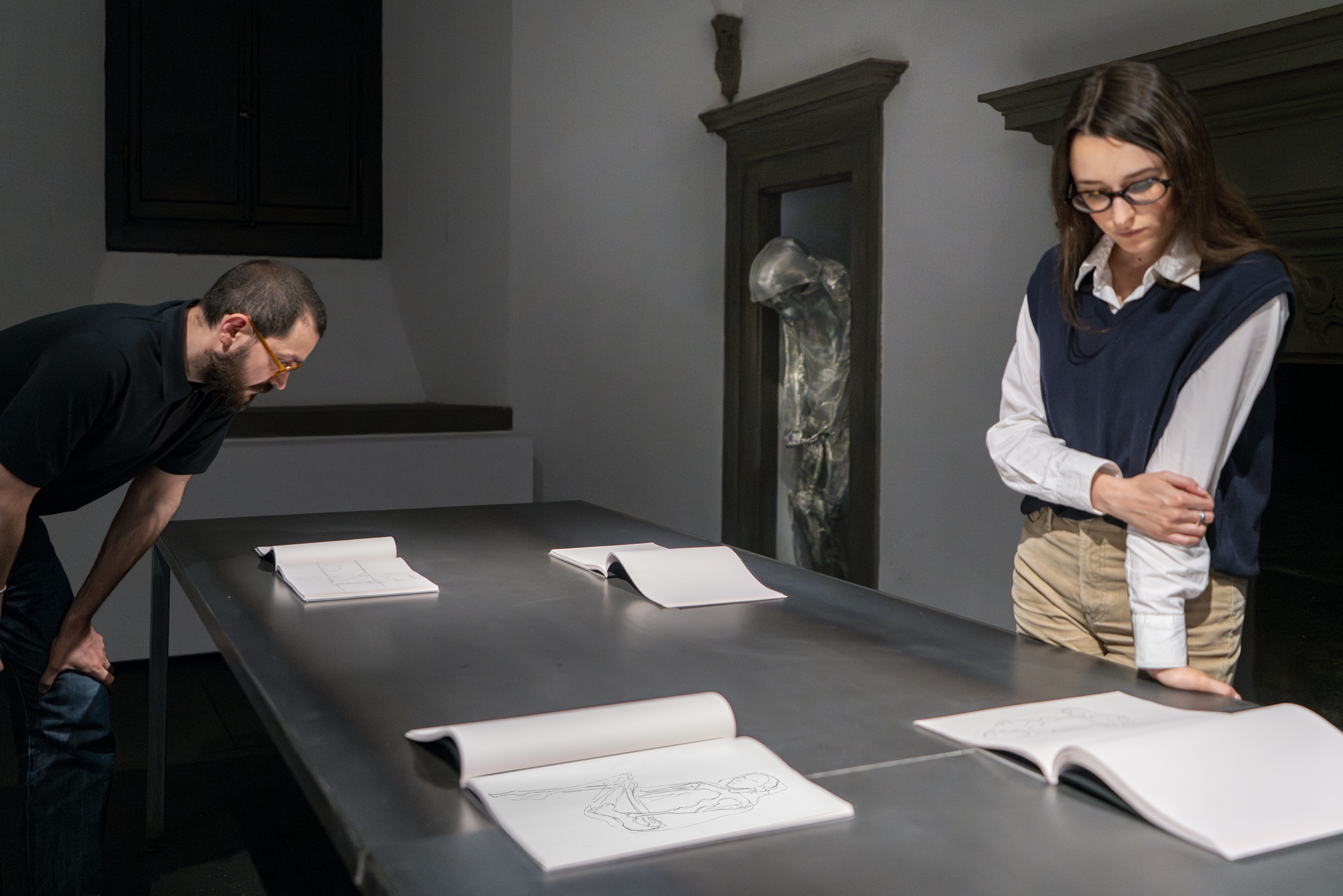 A Palazzo Strozzi, attraverso un progetto site-specific che unisce scultura, installazione e disegno, Giulia Cenci offre una visione popolata da figure e strutture che sembrano appartenere a un tempo sospeso. Il titolo cita l’omonima poesia del 1925 di T. S. Eliot, in cui gli hollow men (“uomini vuoti”) sono figure inerti, in un limbo tra vita e morte, incapaci di agire o redimersi dopo il dramma della Prima guerra mondiale. Gli “uomini vuoti” di Giulia Cenci diventano una metafora per riflettere sulle fragilità e le contraddizioni della condizione umana, tra naturale e artificiale, passato e presente, memoria e oblio.