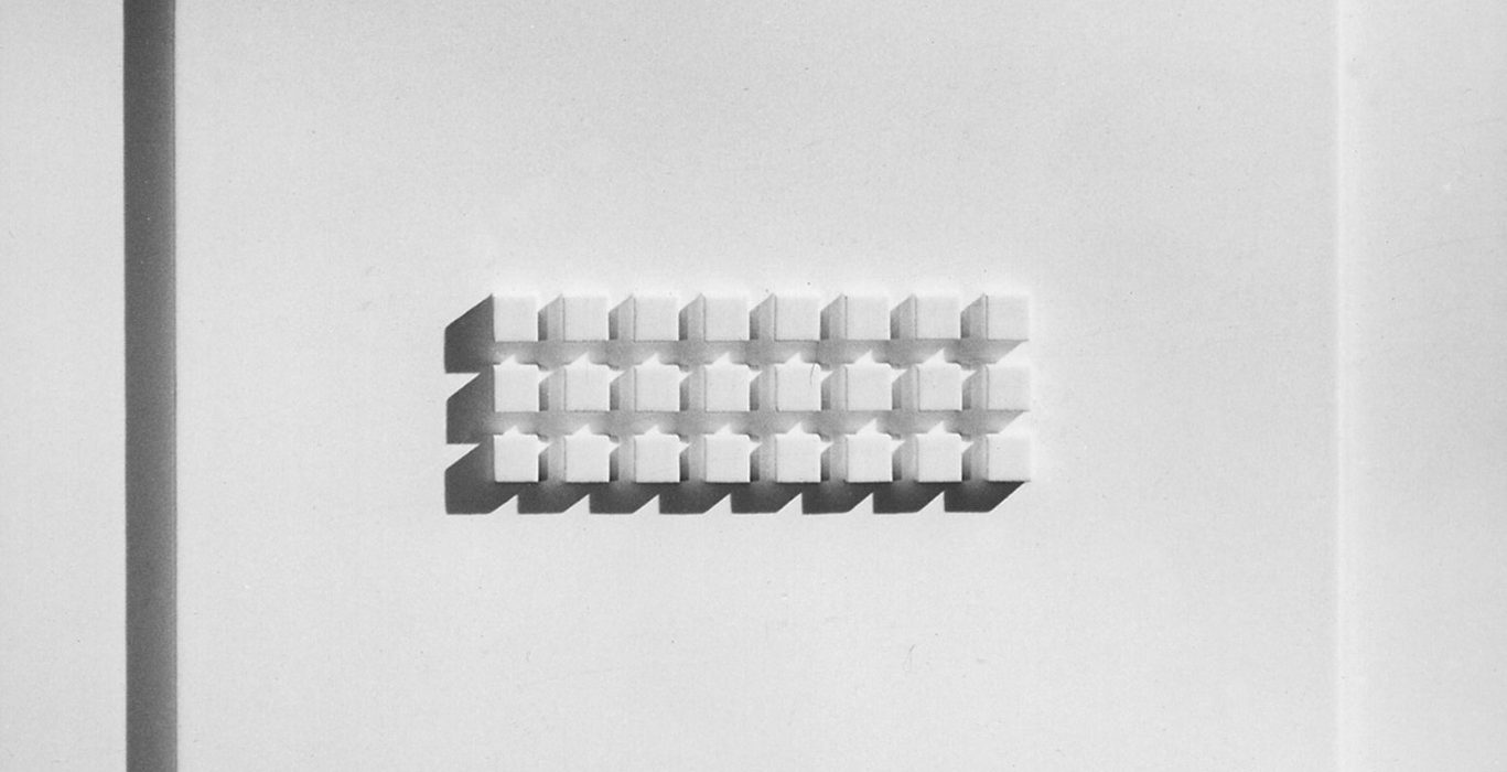 Sandro De Alexandris, Bianco + Bianco n. 8, 1964-65, rilievo in legno e smalto su tavola, 50×50 cm