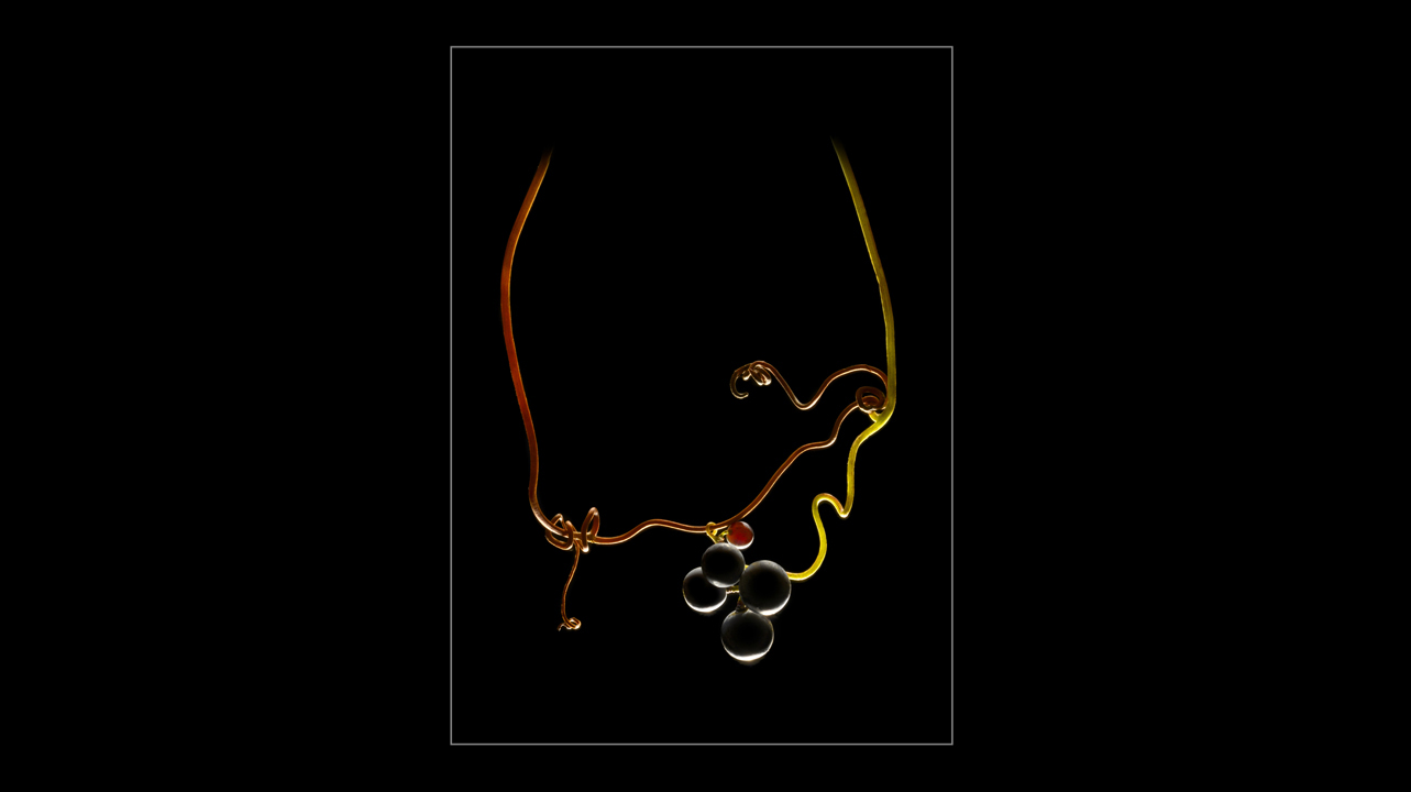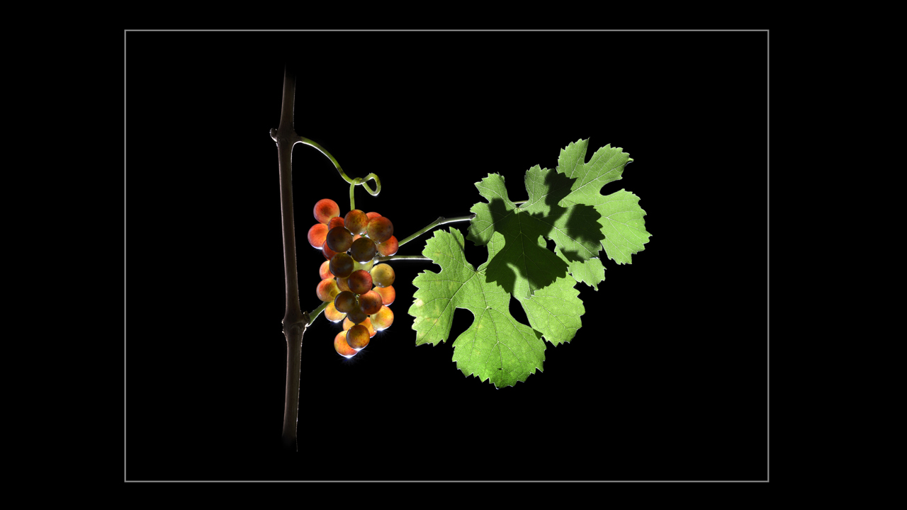 Per tre anni e tre vendemmie, un uomo, un cane e una macchina fotografica si sono aggirati nottetempo nei vigneti, sfidando il freddo e il sonno, il fango e i fossi, vignaioli ansiosi e passanti curiosi, con un solo obiettivo: fotografare l’invisibile in una situazione improbabile. Il risultato sono circa 50 immagini che distillano le forme di acini, grappoli, tralci e pampini, illuminate da un singolo led e da un piccolo specchio, proiettandole in un mondo fantastico: come gioielli unici appoggiati sul nero velluto della notte.