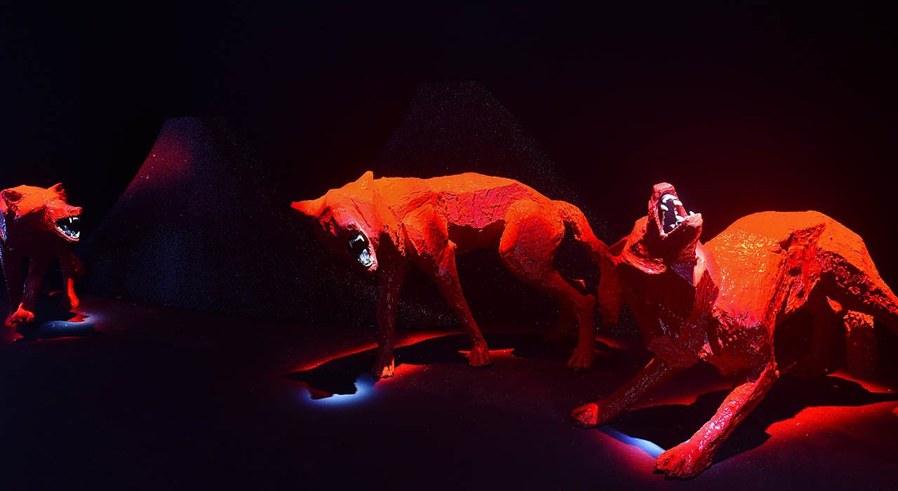 Un percorso in sette ambienti che il poliedrico artista statunitense, Leone d’Oro per la Scultura 1993, crea integrando, con la sua consueta maestria, una grande varietà di linguaggi artistici. Uno spazio onirico di grande impatto visivo ed emotivo popolato da animali, da sempre presenti nella poetica di Wilson, come emblemi della capacità di ascoltare, dell’abilità di muoversi e dell’attenzione a tutto ciò che ci circonda.