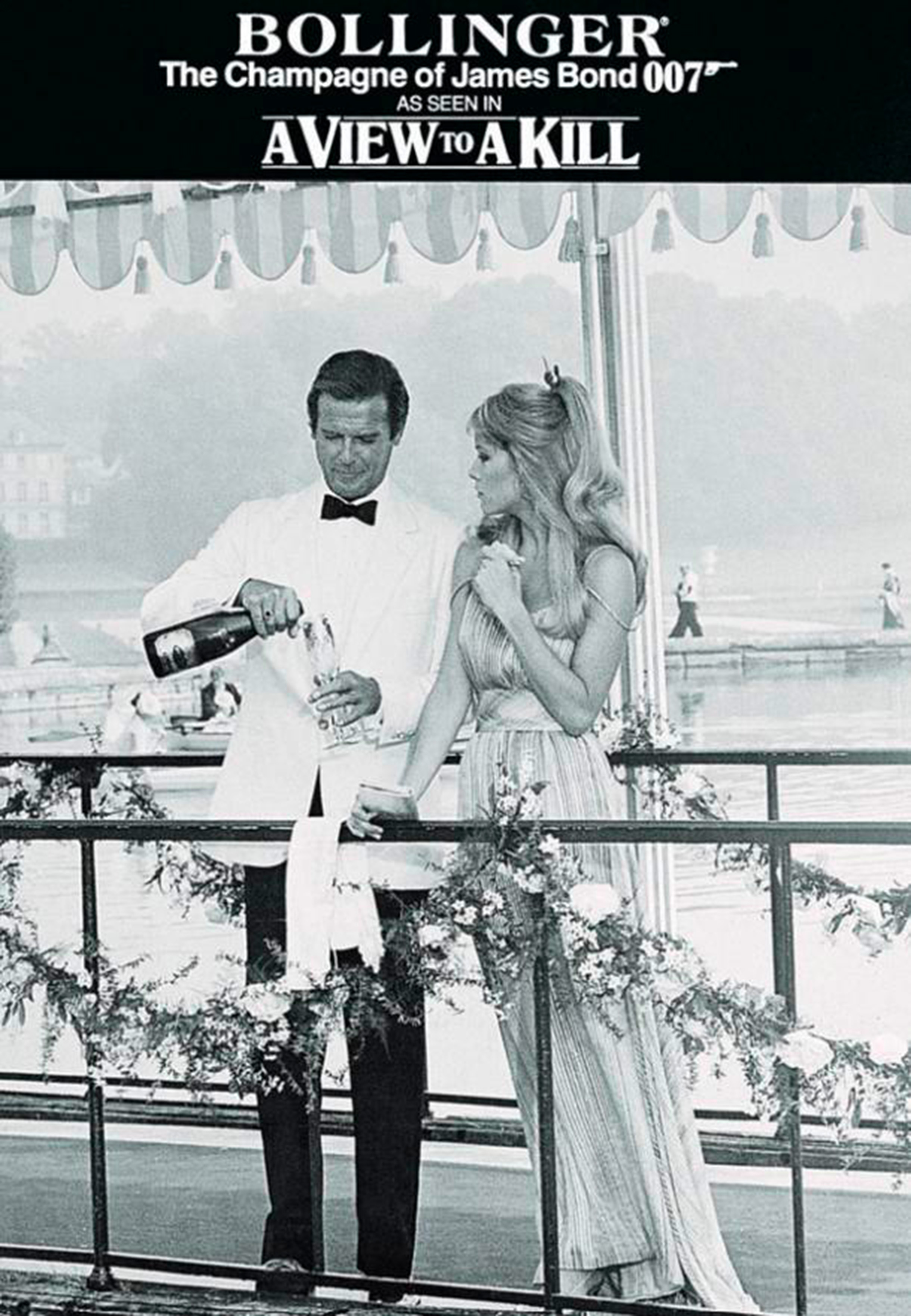 Il 2025 segna anche il 40º anniversario del film di James Bond A View to a Kill, aggiungendo un altro capitolo alla storia condivisa tra due nomi iconici. Champagne Bollinger scorre a fiumi alla festa nella tenuta francese di Zorin, contribuendo a creare un’atmosfera di alta società. James Bond e Stacey Sutton si godono una bottiglia di Champagne Bollinger, come raffigurato anche in un poster ufficiale del film.