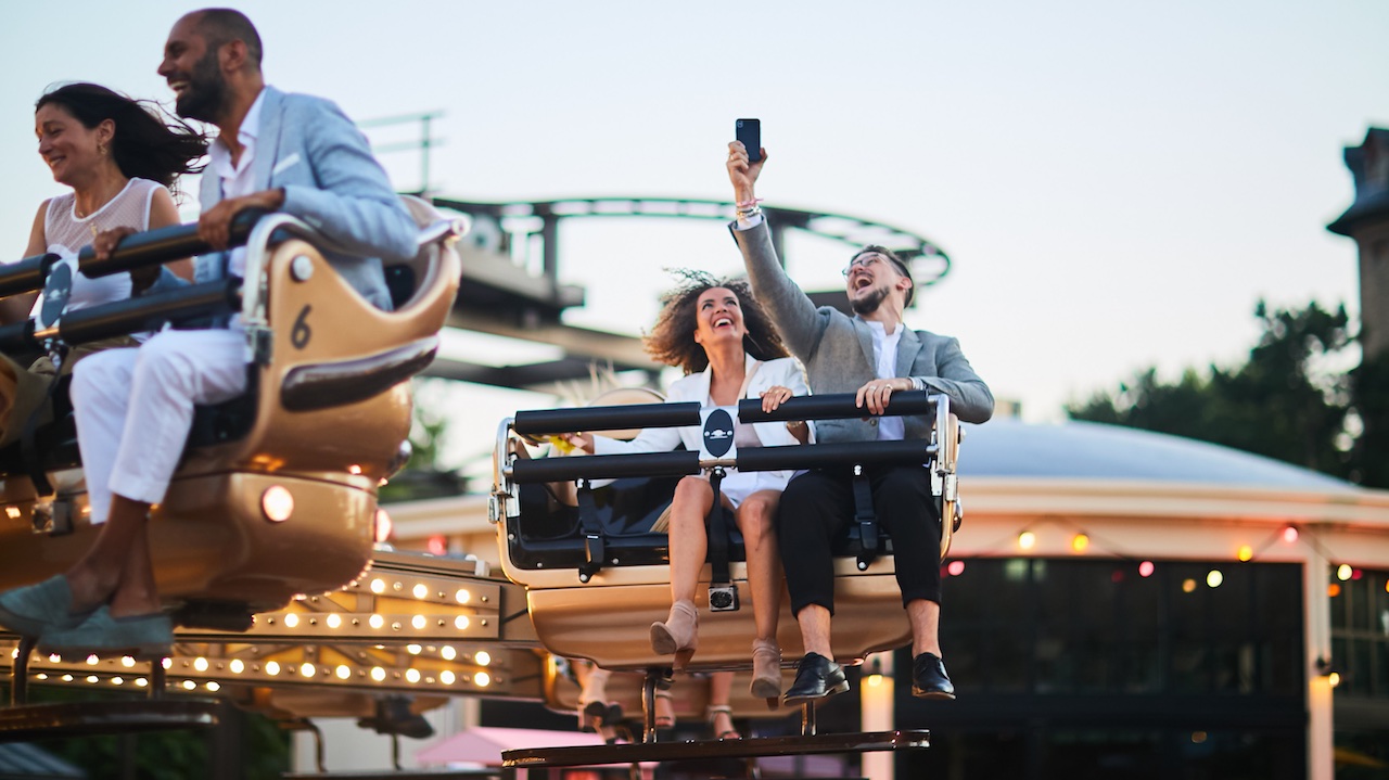 Un evento che ha portato circa 600 ospiti in un luna park colorato, luminoso e giocoso. Un pomeriggio e una serata indimenticabili, per marcare l’importanza del Rosé di Veuve toccando le corde spensierate e giubilanti delle nostre reminiscenze giovanili. Ci siamo calati subito nella parte, e come bambini abbiamo attraversato ruscelli, volato su e giù sull’ottovolante, cercato di vincere un premio ai mille giochi organizzati qua e là. Che non fossimo tornati indietro al tempo alla nostra adolescenza ce l’hanno ricordato gli innumerevoli calici di champagne consumati senza soluzione di continuità e che ci hanno riportato alla nostra quotidianità…