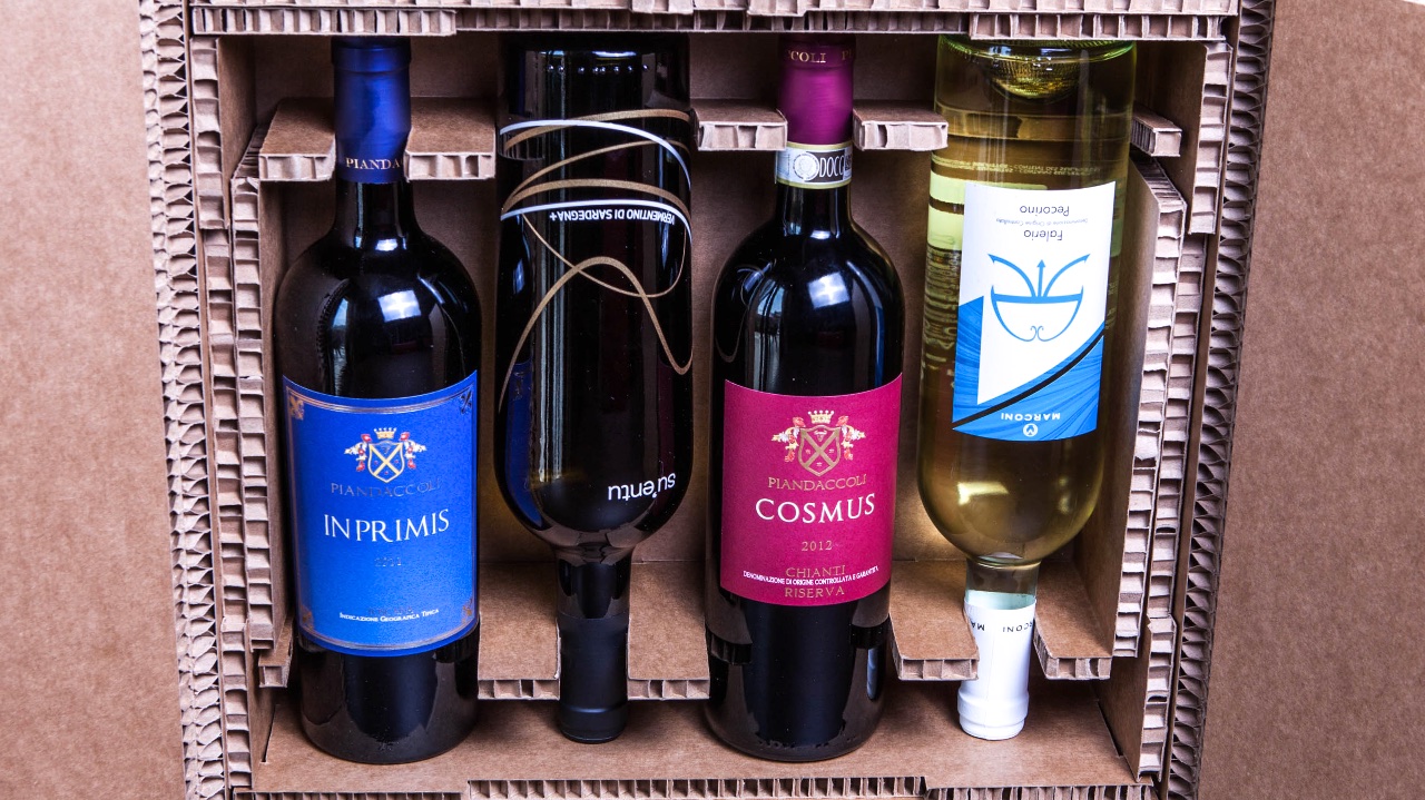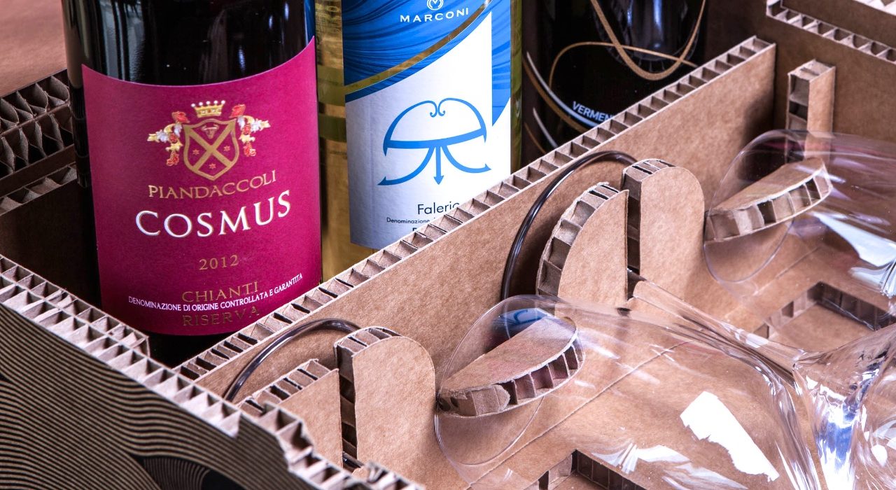 C’è poi l’elemento eleganza, con quattro calici di cristallo Rastal modello Luxor che completano la box, insieme alla bottiglia a scelta tra diverse tipologie di vini suddivisi in vie: Le vie del bianco, Le vie del rosso e L’Élégant per i vini spumanti e gli champagne.