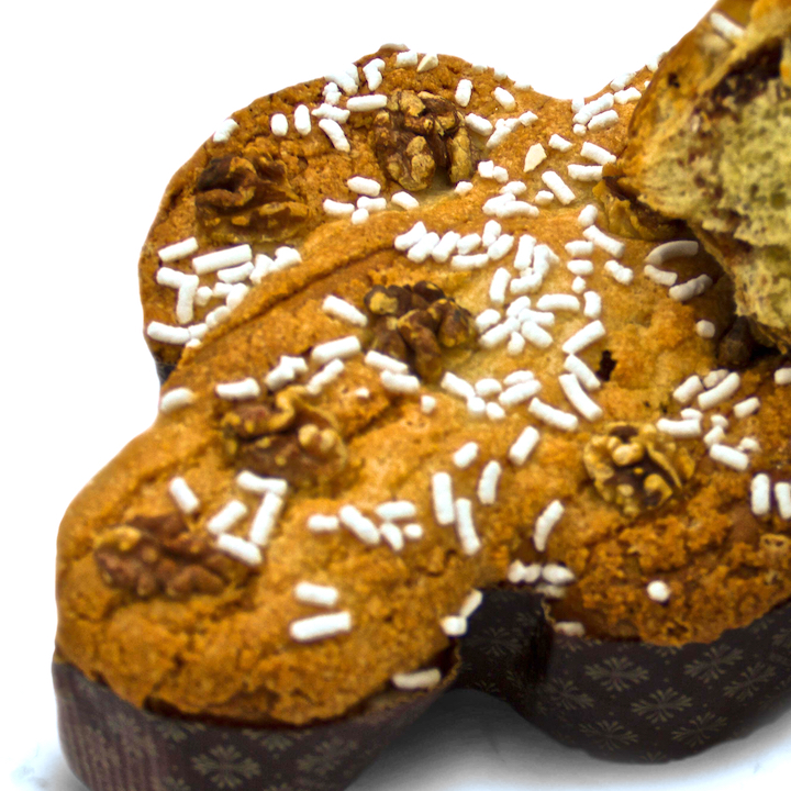 La Colomba Mitteleuropa è una fusione di sapori tradizionali che esaltano quelli locali, grazie al ripieno di noci, arancio candito, briciole di pan di spagna, cacao, rum e burro, i tipici ingredienti del dolce originale che è stato anche denominato Prodotto Agroalimentare Tradizionale (PAT) della Regione Friuli Venezia Giulia.