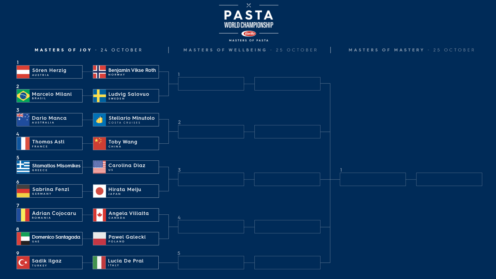 “Barilla vuole offrire il proprio supporto a questo gruppo di chef talentuosi e spingerli ad abbracciare la positività e la convivialità dello stile di vita italiano”, ha aggiunto Andrea Malservisi, Brand Equity and Communication Director del Gruppo Barilla. “Il prossimo Master of Pasta dovrà stupirci con piatti innovativi e sorprendenti, esaltando i codici della cucina moderna”.