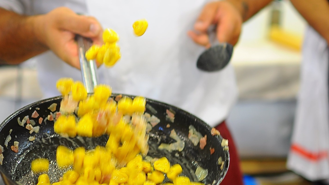 A Bologna, il 4 ottobre, accade qualcosa di molto speciale. E’ il giorno di San Petronio, non si lavora, e le persone escono di casa con un’idea molto precisa di ciò che accadrà di lì a poco. Fanno una passeggiata in centro, si dirigono verso Palazzo Re Enzo, salgono due rampe di scale e si mettono diligentemente in fila per acquistare il ticket d’ingresso del Festival del Tortellino. “La ricetta più antica risale al Trecento” ci racconta Giancarlo Roversi, decano dei giornalisti bolognesi “ed è contenuta nel Libro di cucina del sec. XIV, un prezioso manoscritto conservato alla Biblioteca universitaria di Bologna. La sua preparazione è molto semplice e comprende la lonza (“bronza”), le uova, la “forma” (ossia il Parmigiano) e un’erba aromatica, l’enula”.