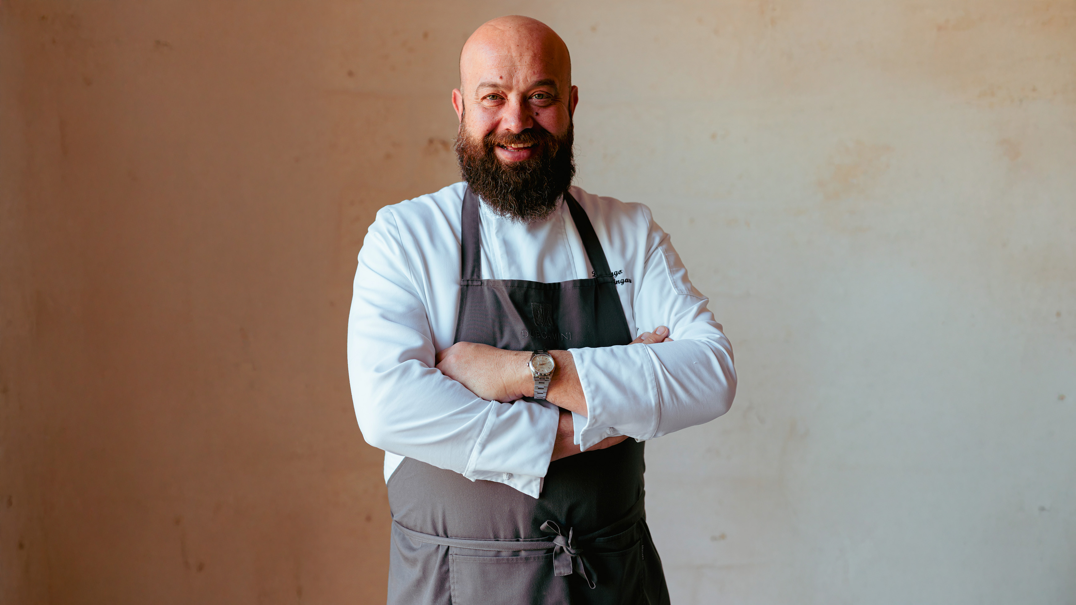Alla guida del Due Camini dal 2016, Domingo Schingaro è l’anima di una cucina che non smette mai di evolversi. Dopo un percorso lungo dieci anni a Borgo Egnazia, oggi inaugura una nuova fase che nasce da un’esigenza personale profonda: uscire dalla propria zona di comfort, mettere in discussione certezze acquisite e accogliere la sfida di un cambiamento radicale. “Sentivo il bisogno di una rivoluzione interna” racconta Schingaro, “perché restare fermi, per me, significa smettere di crescere. Questo nuovo percorso nasce da una ricerca continua, dal desiderio di spostare sempre un po’ più in là il confine della mia cucina”.