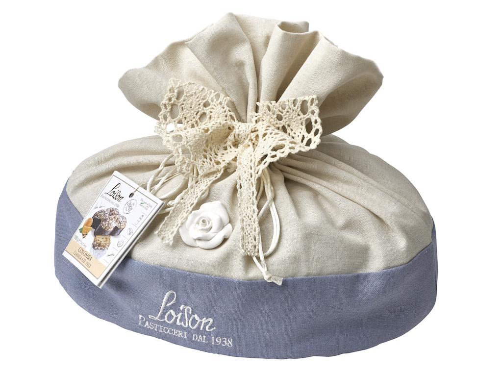 Una confezione che unisce tradizione e innovazione: da una parte il classico sacchetto in tela di robusto cotone canvas, comodo grazie alla chiusura con coulisse fermato da un fiocco di pizzo fatto a mano, ad uncinetto, inamidato al punto giusto. Accanto la novità 2019: l’indovinato profumatore in gesso a forma di rosa. Una collezione che non sfoggia ma lascia intendere il prezioso contenuto, una colomba in tre proposte tutte da un chilo: Classica a.D. 1552, Regal Cioccolato e al Mandarino tardivo di Ciaculli (Presidio Slow Food).