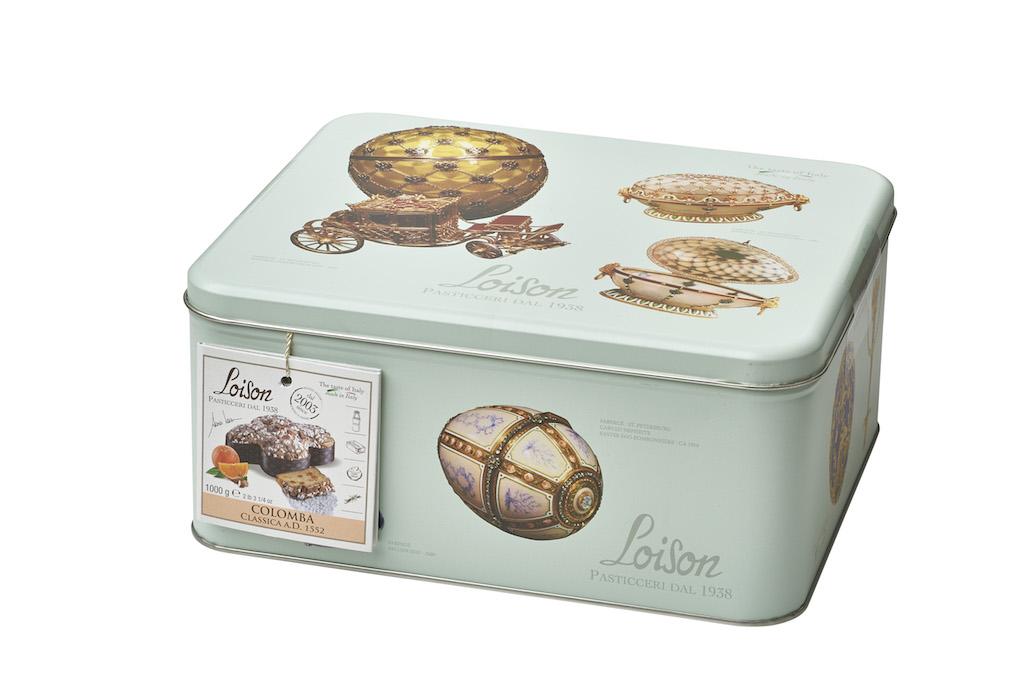 Non bisogna essere degli esperti ma semplicemente amanti del bello e della natura per ammirare le Farfalle, simbolo di risveglio primaverile. Sonia Pilla si è ispirata dalla straordinarietà e infinita bellezza di queste creature, riportandole con leggerezza sull’intramontabile cofanetto, ispirato alle confezioni d’alta pasticceria d’epoca, in tre versioni ognuno differente dall’altro. Tre i colori base nel caratteristico stile Loison per distinguere i tre gusti di Colomba: bianco per la Colomba Classica a.D. 1552, verde acqua per la Colomba DiVigna, rosa fresco per la colomba al Mandarino tardivo di Ciaculli (Presidio Slow Food). Tutte da 750 grammi.