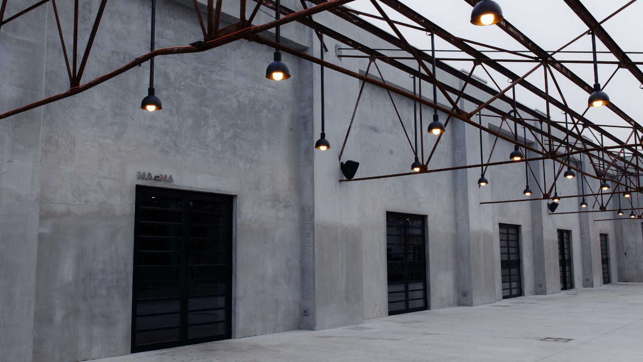 Intorno al cortile che conta 1200 m² sorgono l’area eventi Magma e la galleria d’arte Scaramouche (dal mercoledì, giovedì e domenica 18:00-1:00, venerdì e sabato 18:00-2:00). La prima non ha cancellato la memoria storica nelle architetture, nella volumetria e nell’estetica, rivelando la storia evocata anche dal nome.