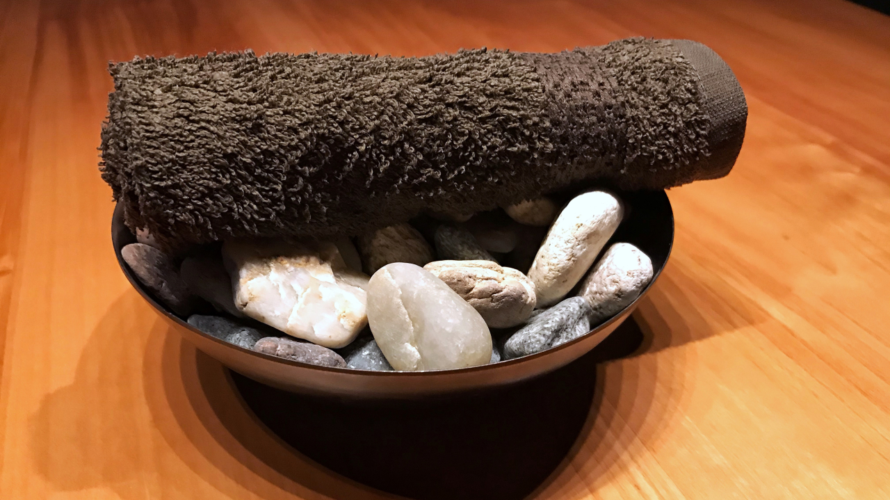 All’arrivo subito una coccola: una tovaglietta calda e umida per le mani, infinitamente piacevole mentre il freddo fuori ha fatto gelare le dita. Poi una breve consultazione della carta delle acque, una bollicina franciacortina (un’edizione limitata di Cabochon di Monterossa) e un piccolo amuse bouche (Anemone di mare fritto con una foglia di shiso), “per preparare il palato”.