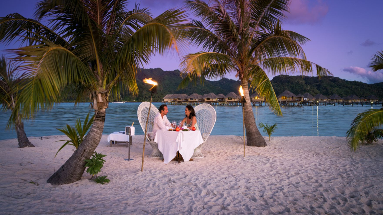 Cena sulla spiaggia: meta dei sogni indiscussa per i viaggi a due e per la luna di miele, Le Isole di Tahiti vantano dei servizi senza pari quando si tratta di coccolare la coppia e di creare atmosfere romantiche. Tra questi, immancabile una cena privata per due sulla spiaggia, abbracciati da luci soffuse, dal rumore delle onde che si infrangono direttamente sulla costa e lontani da tutto. Riconoscerete gli innamorati anche dalle tipiche sedie decorate, solitamente utilizzate per i banchetti nuziali.