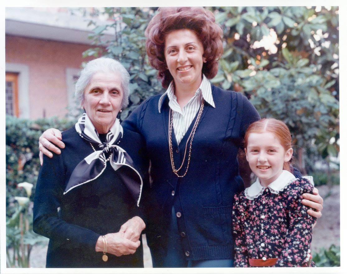 Da sinistra Ida Barbiani (nonna materna), mamma Maria Maddalena e Francesca nel giardino di Casa Fellini