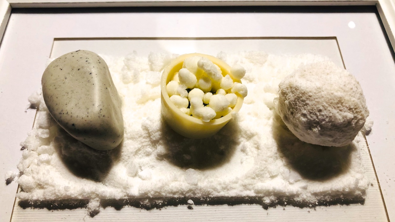 The Terra Tea di manzo bio con funghi, bacche e olio d’abete: l’esperienza nell’esperienza. Profondo come il centro della terra. Un umami spaziale, come un buco nero che tutto travolge e ingoia. I frutti della terra, disidratati, rivivono in una resurrezione spirituale di aromi e sapori. Miracoloso.