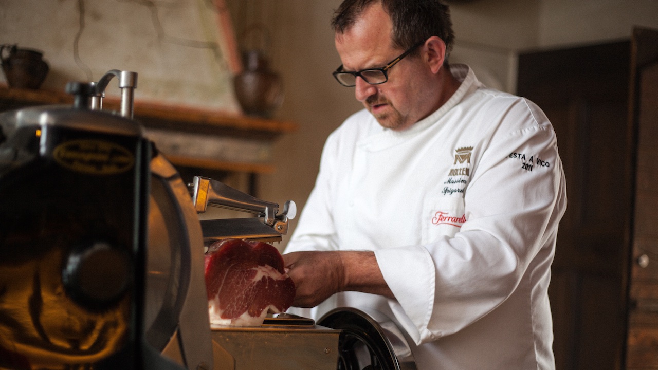 Le tipiche atmosfere della Bassa, lo skyline della pianura rotto ogni tanto dagli argini, le strade che disegnano i confini e seguono il limitare dei campi, e anche la nebbia, così caratteristica in queste zone lambite dallo scorrere del Po’. Al centro della scena, la mirabile cucina di Massimo Spigaroli, e alcune pregevoli selezioni etiche e sostenibili, della Federazione Italiana Vignaioli Indipendenti, insieme alla presidente Matilde Poggi, dell’azienda agricola Le Fraghe, e a Federica Nardello dell’azienda agricola Nardello.