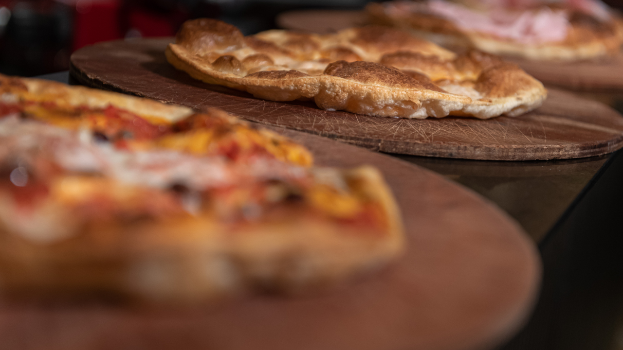 Focaccia ‘pizzata’, con pomodoro, mozzarella, origano