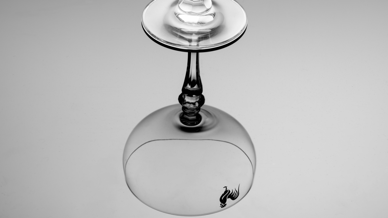 Firma un bicchiere dall’intramontabile eleganza, un passe-partout della mixology, utilizzabile per una grande varietà di cocktails, la coppa da cocktail doppia, dalla morbida forma arrotondata e dallo stelo lavorato. Lo personalizza apponendoci l’immagine di un gallo, la cui coda è da sempre sinonimo visivo del cocktail da bere (dall’inglese cocktail = coda di gallo).