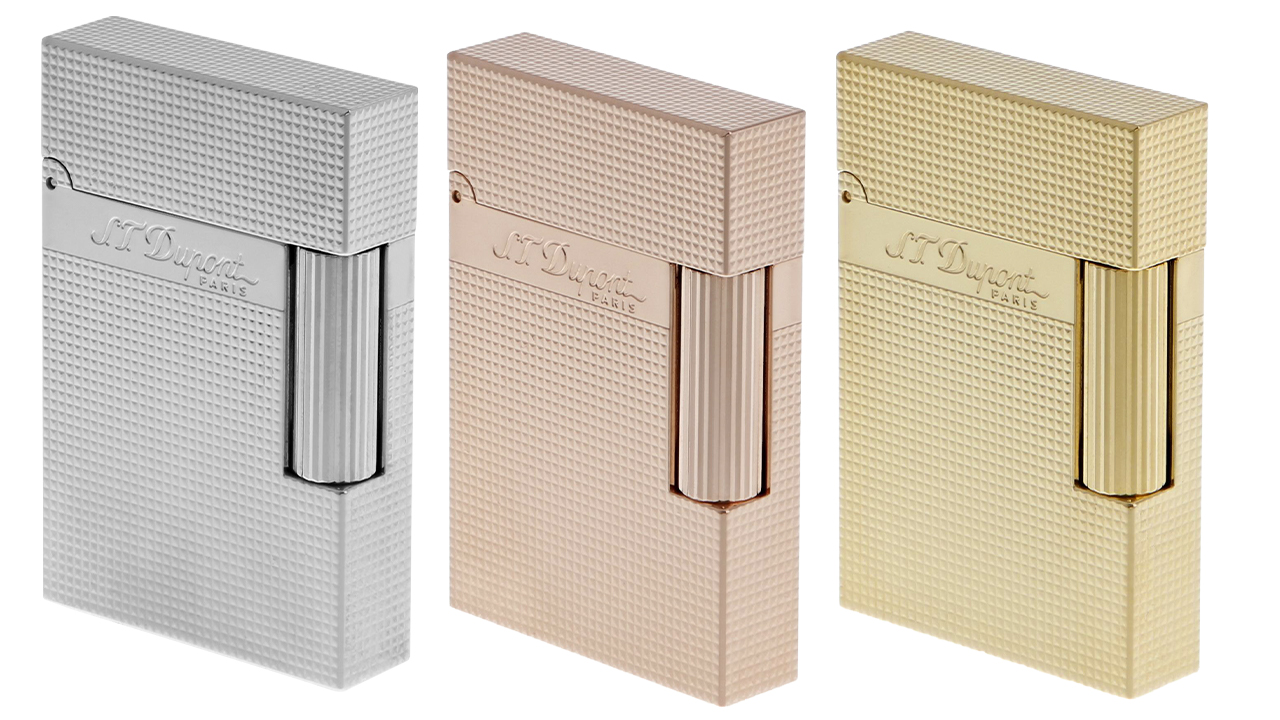 La collezione comprende tre accendini full size. La scelta potrà ricadere su un accendino Line 2 in palladio, con il rotore e il cappuccio rifiniti con lavorazione a punta di diamante miniaturizzata, impreziosita da un coperchio luccicante con l’incisione del blasone S.T. Dupont Paris, oppure su uno dei due nuovi sofisticati modelli in lacca naturale Linea 2 nelle varianti nera, con cappuccio in palladio inciso in micro diamante, e blu, con dettagli in oro.