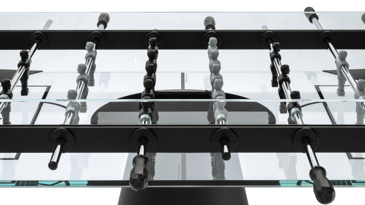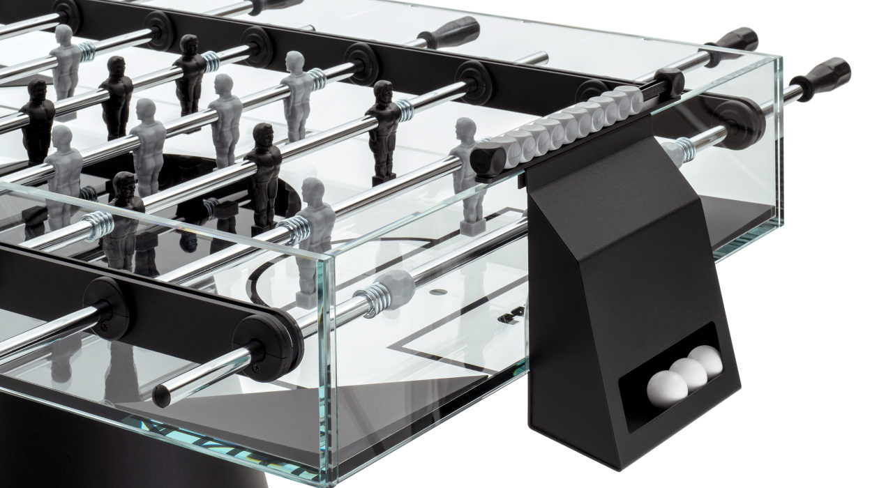Ghost ha un portamento elegante, è una presenza preziosa. Ricercato, non è un oggetto bello da “guardare e non toccare” ma è un calciobalilla professionale perfetto sia per le sfide tra campioni che per gli appassionati di questo gioco. Ghost ha un campo da gioco in cristallo trasparente e finiture in metallo.