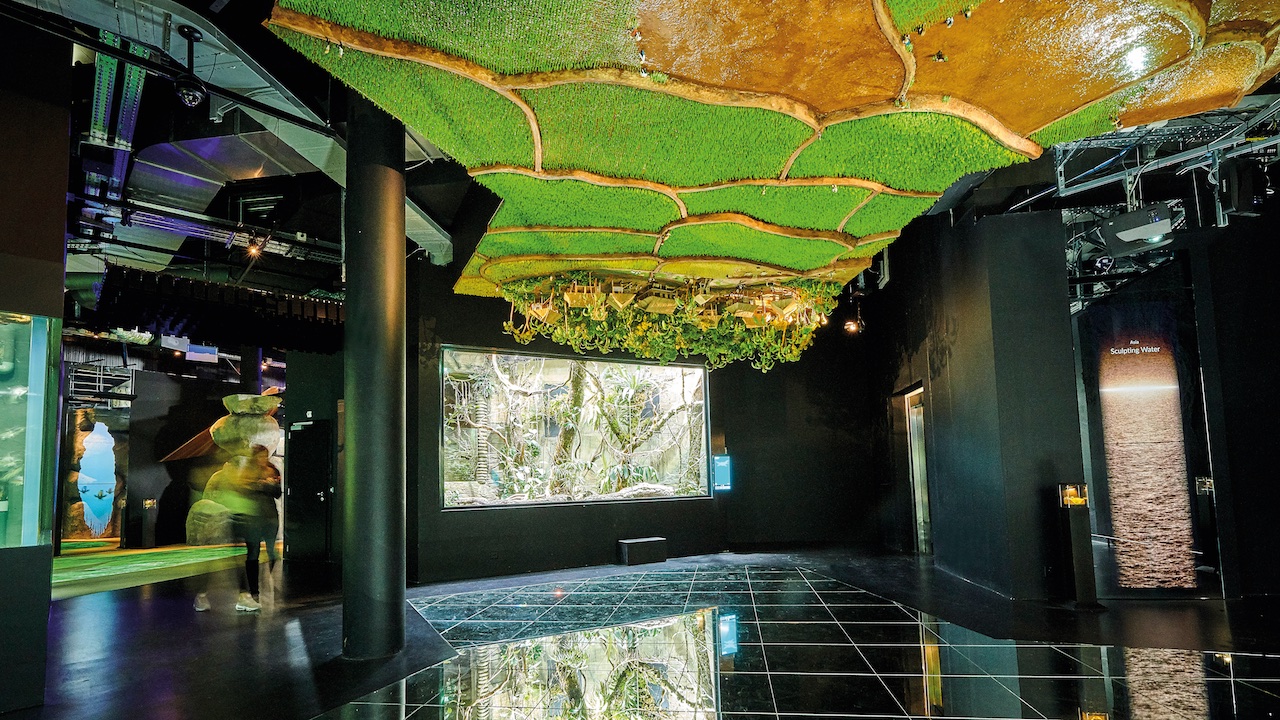 Il secondo piano espositivo si apre con l’incontro con il celebre Spinosauro, un passaggio che introduce alla storia dell’evoluzione e trasporta i visitatori in luoghi più remoti. Richiamati in spazi d’immersione sensoriale, il viaggio prosegue verso la Placca africana, i suoi laghi e un assaggio della sua fauna terrestre, tra manguste e coccodrilli. Si giunge poi tra i villaggi galleggianti del fiume Mekong, una scoperta che avviene attraverso formazioni vegetali di mangrovie e il sapiente utilizzo dell’acqua e della piscicoltura nelle risaie. Con i laghi della Papua Nuova Guinea si giunge in Oceania, per raggiungere la Grande Barriera Corallina, il Pioneer River e, infine scoprire il leggendario drago di Komodo. Tra alberi monumentali, cascate e vasche percorse dalle più affascinanti specie acquatiche si attraversa la foresta pluviale dell’Amazzonia, in America meridionale, luogo in cui gli alberi “comandano la pioggia” in cui si rivive il ciclo dell’acqua, sinonimo di vita e di rinascita.