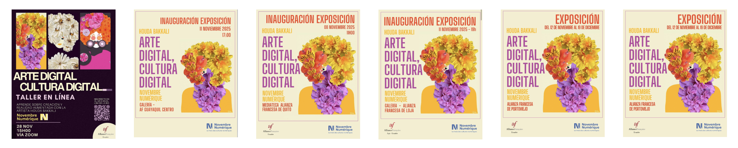 Guayaquil, Cuenca, Loja, Portoviejo e Quito, in Ecuador, la rete delle Alliance Française dell’Ecuador ospita la mostra “Arte Digitale, Cultura Digitale” dell’artista Houda Bakkali.