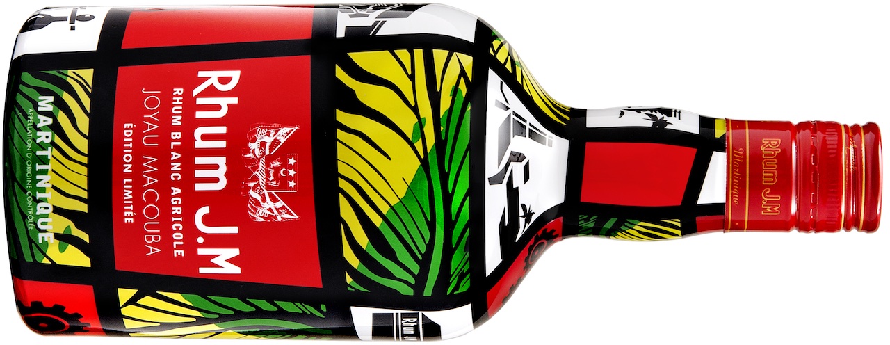 Dalle illustrazioni che rivestono la bottiglia si riconoscono la famosa vista sui tetti rossi della distilleria J.M, il ponte sotto il quale scorre l’acqua di sorgente proveniente dal Monte Pelée, così preziosa per la distillazione del suo rhum, una delle macchine da taglio della canna che lavorano sui 220 ettari di campi classificati AOC che circondano la tenuta e l’atelier olfattivo dove si scoprono tutti i sapori dei Rhum J.M.