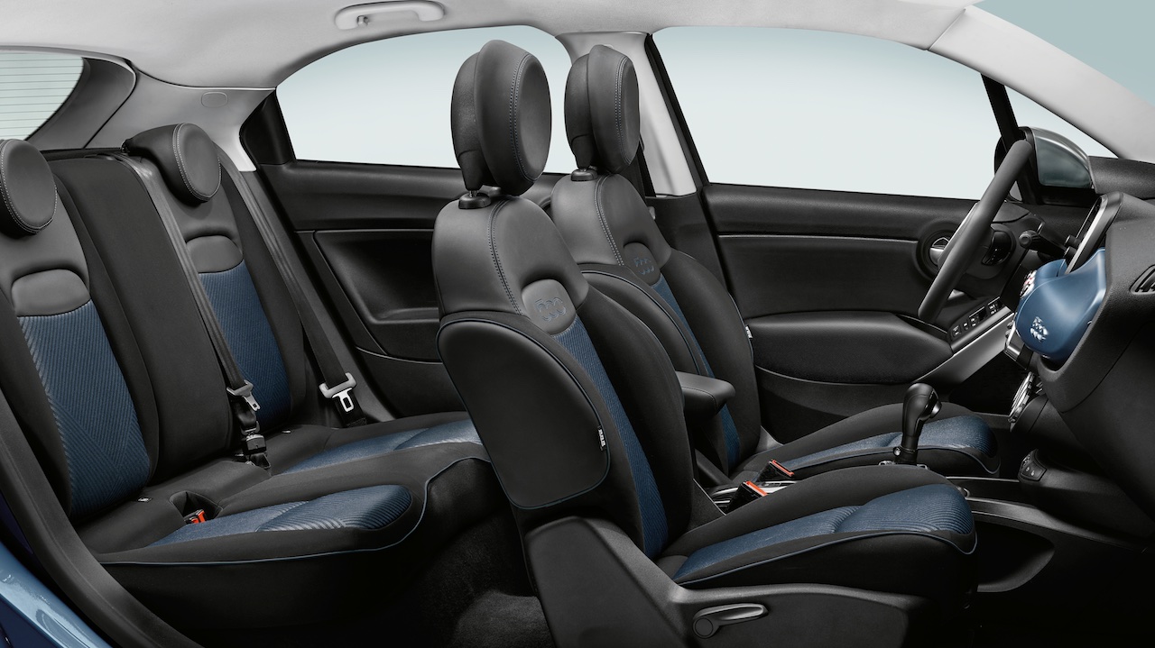Tra le livree disponibili, inoltre, Bianco Gelato, Nero Cinema, Grigio Moda e Blu Italia. Gli interni sono caratterizzati da rivestimenti specifici con cuciture blu e dalla fascia plancia Blu Jeans opaco.