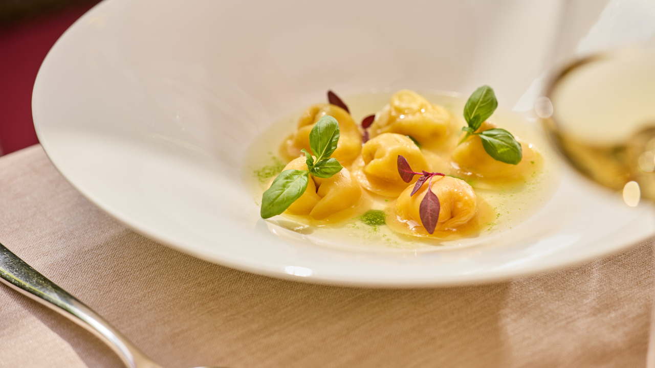 L’interno è accogliente e sofisticato, valorizzato da ampie vetrate che creano continuità con il giardino all’italiana e diffondono una calda luce naturale. L’atmosfera è ideale sia per pranzi di lavoro e incontri conviviali, sia per cene romantiche, grazie all’illuminazione modulabile. Gli interni, curati dallo Studio di Design Celeste dell’Anna, includono spazi ben definiti e un ingresso indipendente dall’hotel. Dalla pausa pranzo alla cena, passando per il tradizionale Sunday Lunch, l’esperienza gastronomica si sviluppa attraverso un raffinato menù degustazione e una selezione à la carte che rende omaggio ai grandi classici della cucina italiana, reinterpretati con creatività e un tocco contemporaneo.