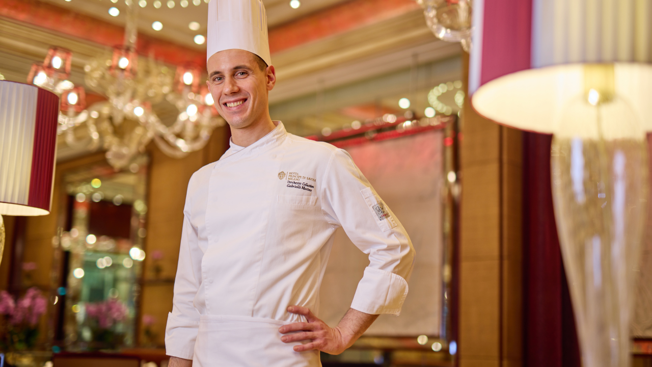 Alle redini della cucina dal 2023 l’executive chef Matteo Gabrielli, classe ‘90, forte di un percorso internazionale nell’hotellerie di lusso, dal Four Seasons Park Lane sotto la guida dello chef italiano Adriano Cavagnini, al due stelle Michelin “Dinner by Heston Blumen- thal” dell’hotel Mandarin Oriental Hyde Park. Mentre in Italia inizia al fianco dello chef Antonio Guida nel ristorante Il Pellicano di Porto Ercole, per poi arricchirsi con una nuova esperienza al Petit Royal, all’interno del Grand Hotel Royal di Courmayeur. Nel 2016 torna a Milano, prima a Palazzo Parigi Hotel & Grand Spa, per poi proseguire con un incarico biennale al Four Seasons Hotel, lavorando al fianco dello Chef Vito Mollica e approfondendo le dinamiche della banchettistica su larga scala. Nel 2019 entra a far parte della brigata dell’Hotel Principe di Savoia come sous chef di Alessandro Buffolino. Dopo quattro anni, nell’autunno del 2023, assume ufficialmente la guida del ristorante Acanto.