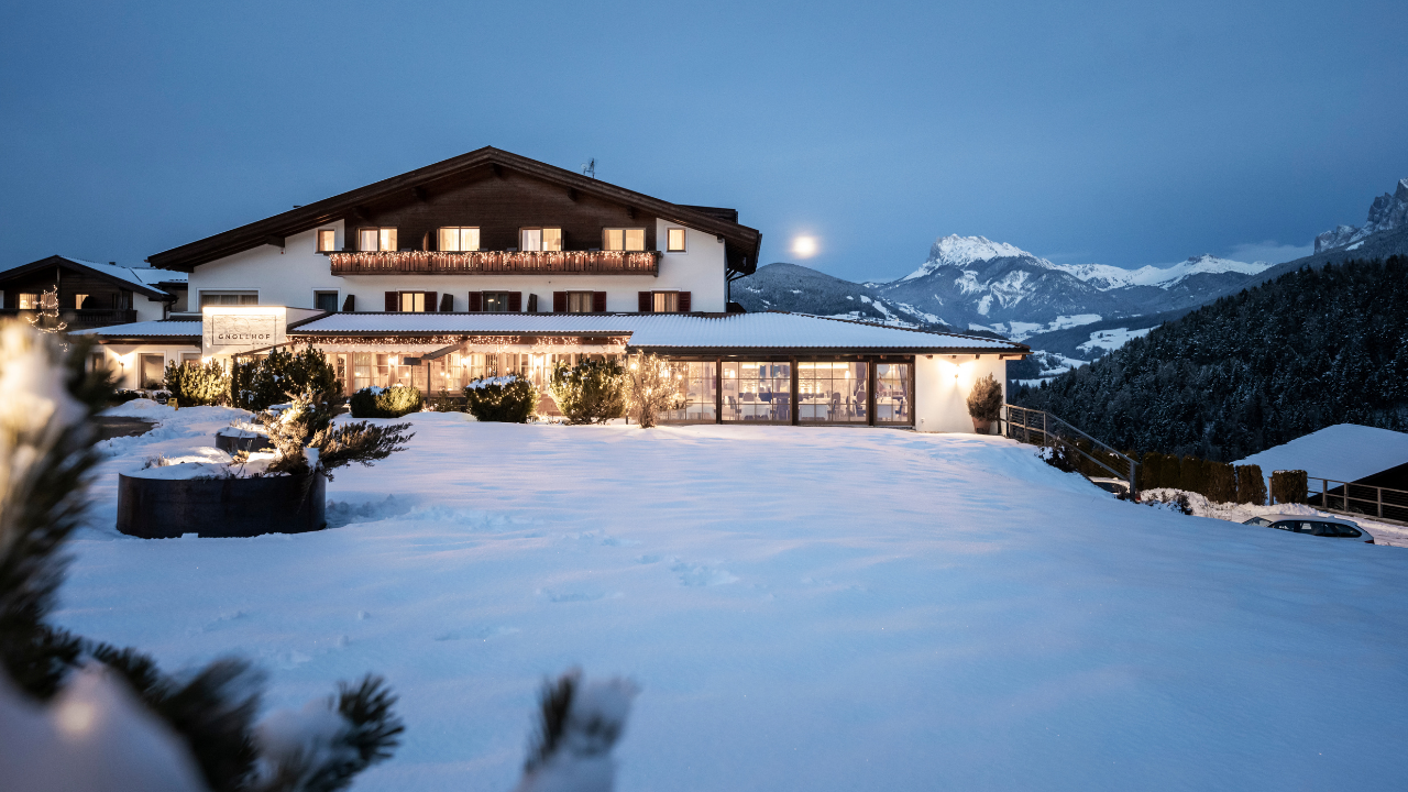 Dalle ampie vetrate delle camere dell’hotel Gnollhof Mystic Place Dolomites a Gudon, nel cuore della Valle Isarco, in Alto Adige, si apre un panorama d’inverno capace di rapire il respiro: un orizzonte di vette imbiancate, boschi di larici e pini che si stagliano contro il cielo delle Dolomiti. A 1.160 metri di altitudine, questo rifugio alpino accoglie con calore. Le sue suite, dotate di balcone privato, regalano una veduta sulla Valle Isarco, invitando a immergersi nella quiete e nella magia dell’inverno altoatesino. Al Gnollhof, il panorama non è solo uno sfondo: è protagonista di un’esperienza sensoriale che coinvolge il corpo e lo spirito. Dalla piscina a sfioro riscaldata, sospesa tra i rami innevati e la vallata sottostante, al silenzio delle passeggiate sulla neve, ogni attimo diventa un piccolo miracolo di bellezza e pace. Lontano dal caos delle piste affollate, qui si riscopre un modo più autentico di vivere la montagna, tra ciaspolate tranquille, discese in slittino e lunghe camminate immersi nella natura più pura. Al rientro, l’accoglienza si fa coccola: la Spa offre rituali di benessere per rigenerare il corpo e calmare la mente. Dal calore avvolgente della sauna panoramica finlandese al relax del bagno turco, fino alla quiete galleggiante nell’infinity pool con vista sulle cime innevate, ogni scelta è un dono per sé stessi.