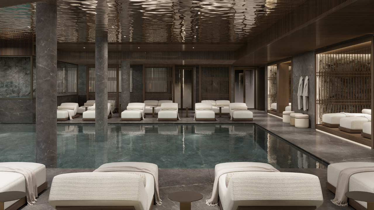 La meravigliosa Spa di 1000 mq, che si presenta come una delle più grandi di Cortina, si distingue nel panorama dell’ospitalità di lusso, posizionandosi all’avanguardia grazie a una prestigiosa partnership con The Longevity Suite, marchio pioniere e di riferimento nel settore della longevità. Questa collaborazione strategica culmina nell’apertura di The Longevity SPA, la terza in Italia, destinata a ridefinire i canoni del benessere per gli ospiti. The Longevity SPA proporrà un approccio avanzato, scientificamente convalidato, interamente dedicato a promuovere una vita più longeva, sana e in perfetto equilibrio psico-fisico. The Longevity SPA mette a disposizione l’innovazione e l’expertise del sistema olistico e multidisciplinare di The Longevity Suite, marchio italiano che unisce in modo sinergico le più avanzate tecniche di biohacking con la filosofia e le filosofie delle Blue Zone – le rinomate aree del mondo note per l’eccezionale longevità dei loro abitanti. Dagli accurati check-up diagnostici personalizzati ai distintivi Rituali Signature, dai trattamenti di esposizione controllata al freddo, come la rivoluzionaria Cryosuite Total Body, fino ai protocolli drenanti e rigeneranti, ogni singola esperienza firmata The Longevity SPA è un invito a un percorso di riscoperta e rinnovamento profondo. È qui che scienza, tecnologia di punta e benessere autentico si fondono magistralmente per ristabilire l’armonia ottimale tra corpo, mente ed energia vitale. Nella The Longevity SPA, il brutalismo del rilievo montano, filo conduttore del design, si declina dalle decorazioni murali fino alla segnaletica, invitando alla contemplazione, al silenzio e al benessere. Il marmo Jolie Grey si estende su tutto il piano, esaltando i tocchi chiari del marmo Cristallo Bianco e il soffitto metallico color bronzo effetto specchio. Gli arredi invece sono composti in legno naturale. Il percorso benessere si sviluppa tra spogliatoi, cabine per massaggi, crioterapia, saune e bagno turco, per concludersi in una spettacolare piscina. Per un’esperienza ancora più esclusiva, è disponibile anche una spa privata, che offre intimità e serenità assolute.