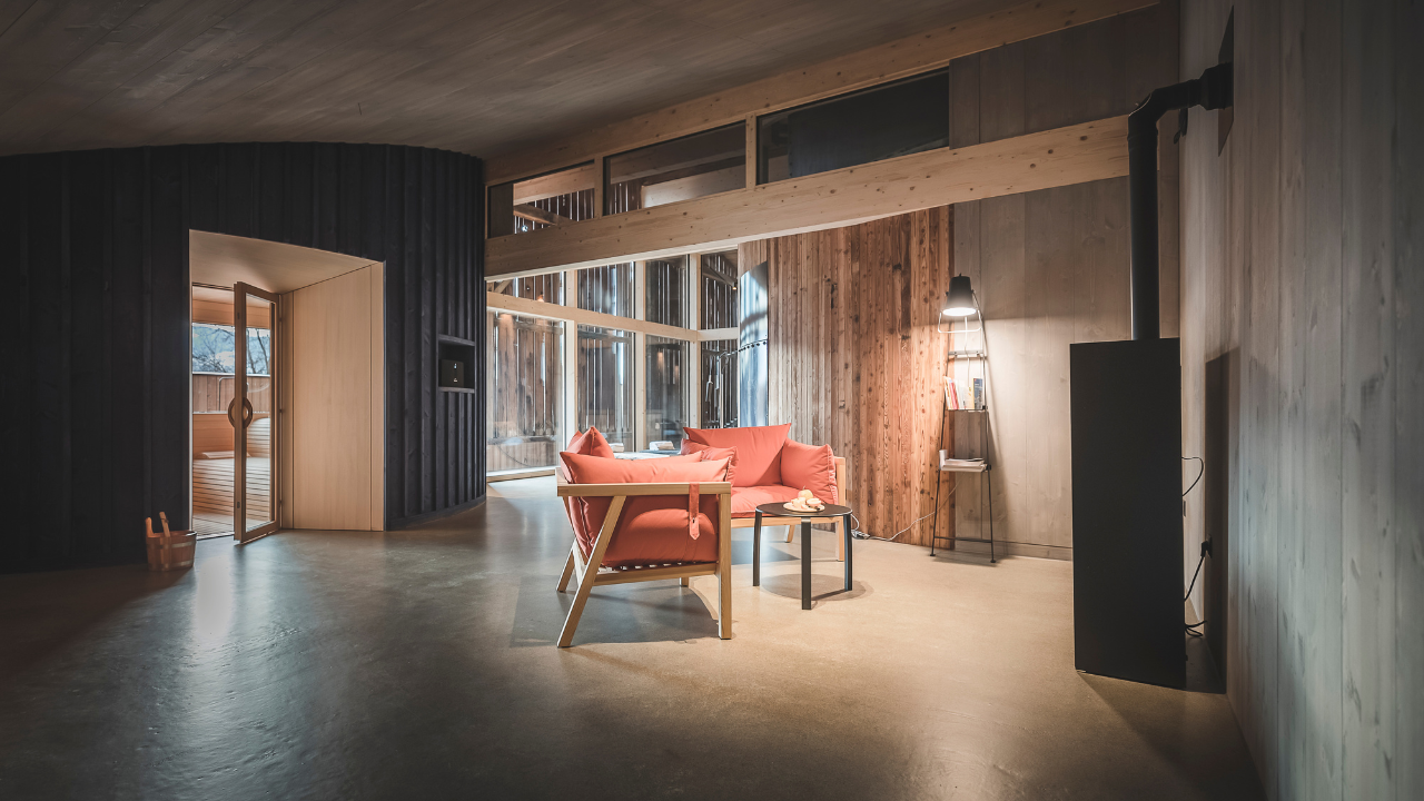 Tra legno antico e armadi in stile Jugendstil, divani di design, mobili storici reinterpretati e una moderna scala in acciaio, ogni aspetto racconta la dedizione per l’eccellenza. Gli affreschi della carta da parati sono firmati dall’artista e designer locale Ingrid Canins mentre le romantiche stufe in ceramica oggi vengono riscaldate con la tecnologia più avanzata. Si dorme in letti di dimensioni davvero generose (2,10 metri) che sembrano sospesi nel cielo; le docce sono spaziose e walk-in, le vasche invitano a lunghi bagni caldi. E anche se i bellissimi e antichi pavimenti in legno scricchiolano un po’ – cosa più che lecita – il vicino di stanza non sentirà nulla: grande importanza è stata infatti data alla separazione acustica delle singole camere. La struttura è anche pet-friendly su richiesta e offre spazi versatili. L’antico fienile del maso è stato trasformato in un’area wellness privata, la “Stodl SPA”: una grande vetrata rivela le antiche travi in legno, mentre le pareti del vecchio silo, sapientemente recuperate, sono state integrate nel progetto architettonico come un’opera d’arte a sé stante. Qui ci sono una sauna con vista panoramica, una doccia spaziosa, una terrazza privata e un’accogliente zona relax con camino. Un’esperienza unica è offerta agli ospiti dalla possibilità di accedere a uno dei silo tramite una passerella sospesa su un letto di fieno. Raggiunta una piccola piattaforma, ci si trova immersi nel silenzio assoluto, con la possibilità di ammirare l’imponenza del silo e di entrare in profonda connessione con sé stessi in un’atmosfera quasi surreale e metafisica: è il Silo dell’introspezione. L’intero spazio può essere prenotato insieme alle camere per un massimo di sei ospiti, garantendo un’esperienza esclusiva. In caso di maltempo, gli spazi dell’area benessere sono aperti a tutti gli ospiti della struttura.