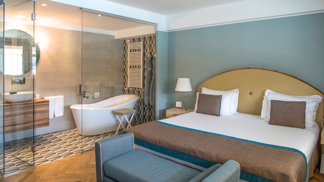 50 camere eleganti, spaziose, confortevoli e luminose, arredate con gusto raffinato, nelle tonalità naturali del sabbia e dell’azzurro, dotate di terrazzi e balconi, a cui si aggiunge l’esclusiva suite del Castello, sorta nella parte più antica dell’edificio, un tempo occupata dalla cappella del convento, dotata di terrazza panoramica con vista sulla baia.
