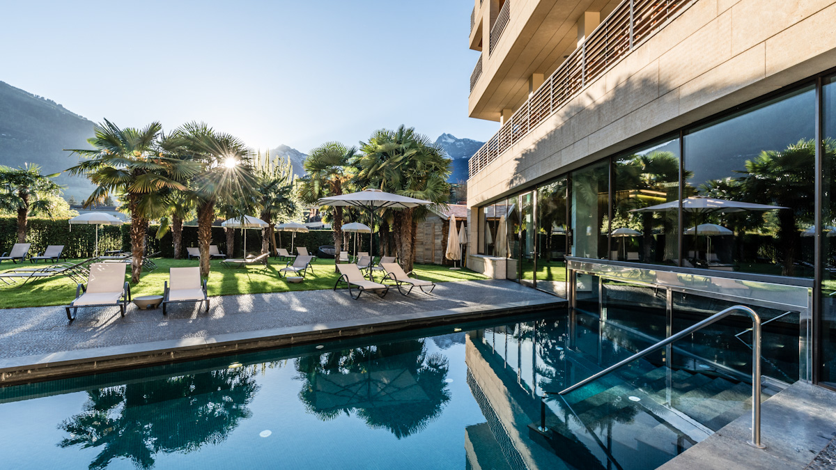 Design lineare e materico, che porta la firma dell’archistar Matteo Thun, ha rappresentato la novità degli ultimi anni, divenendo una vera e propria Spa destination, con 139 camere e suite, ampie ed eleganti dotate di balconcino privato e realizzate in materiali naturali e ambienti comuni di grande fascino.