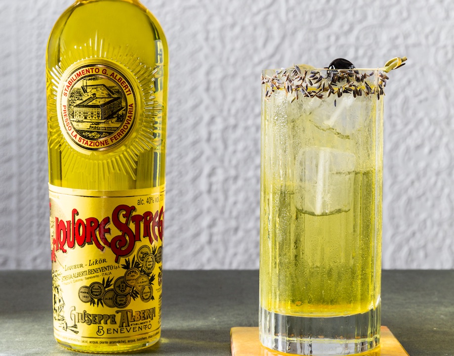 Versare tutti gli ingredienti in uno shaker colmo di ghiaccio. Shakerare energicamente. Versare il liquido attraverso un colino in un bicchiere alto contenente ghiaccio. Completare con l’infuso di camomilla. Guarnire con lavanda e ciliegia al maraschino.
