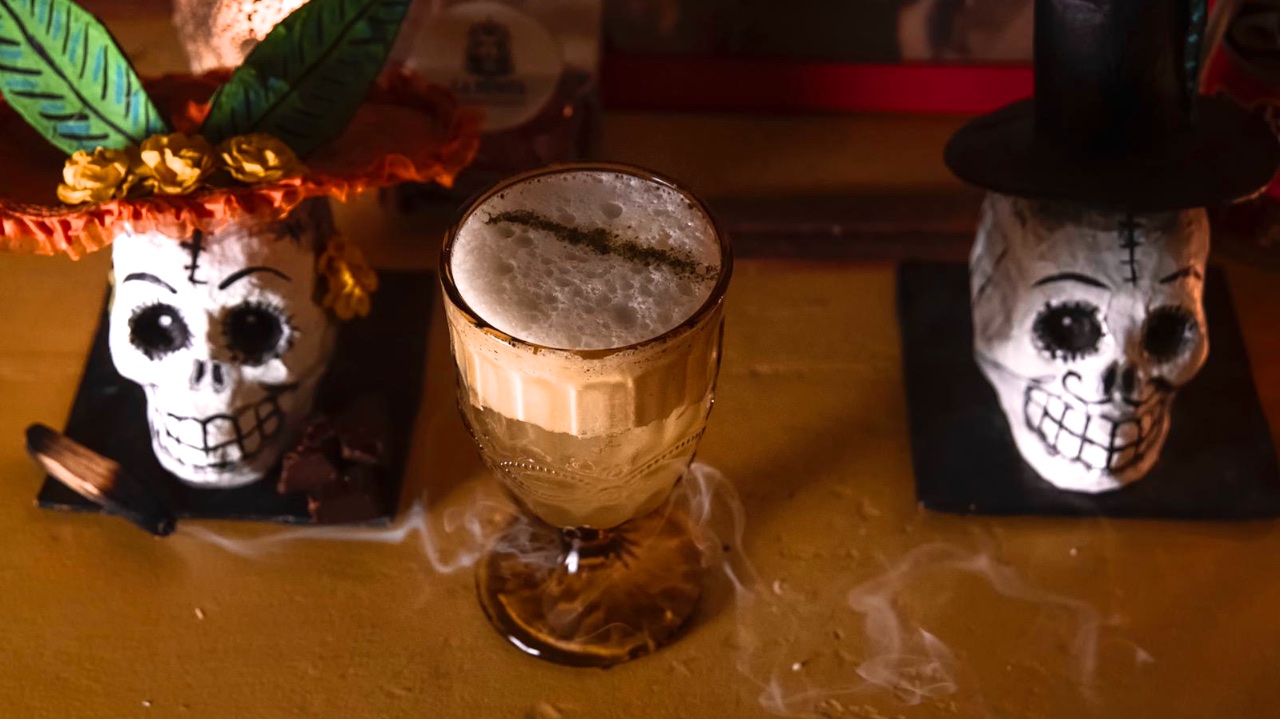 Il “Dia de los Muertos” è una celebrazione che arriva dalle popolazioni pre-ispaniche caratterizzata dall’incontro tra i vivi e i morti. Si tratta di una festa più familiare che pubblica, il momento in cui si ricordano e si onorano i propri cari defunti. Giorni in cui i defunti stessi passano “il ponte” che li separa dalle proprie famiglie, una ricorrenza in cui si manifesta l’importanza dei legami e dell’eredità familiare. In Messico le celebrazioni si svolgono con delle preparazioni molto importanti, cariche di significato, come l’allestimento dell’altare dei morti. Una piccola ara dove la famiglia del defunto ripone una foto e altri suoi oggetti personali, come i vestiti e i cibi preferiti. Non possono mancare candele, cioccolato, sale, acqua, i fiori di cempasúchil, diverse resine aromatiche (incenso, copale e mirra), il pan de muertos (un pane dolce con semi di anice), le calaveritas (teschietti di cioccolata, zucchero o amaranto), tutti elementi che simboleggiano i piaceri della vita e soprattutto guideranno l’anima del defunto verso il mondo terreno. Un deciso stacco con i paesi anglosassoni dove la morte è un tabù e generalmente è associata a concetti negativi come la tristezza, il pianto o addirittura la paura, determinata dalla perdita di una persona cara. Per i messicani sono giorni invece in cui le frontiere dei due mondi svaniscono temporaneamente ed è possibile rivivere il legame e gli affetti familiari prendendosi gioco addirittura della morte: La Catrina o la Calavera Garbancera, rappresentata da uno scheletro con sombrero, e carica di colori sgargianti. Con questo drink la crew de La Punta Expendio de Agave di Roma fa compiere un viaggio, guidando e stimolando i sensi e ricordando quando, da bambini, il giorno dei morti tutti noi aspettavamo i regali che i nostri cari ci avrebbero portato dall’aldilà. Il passaporto non serve, bicchiere in mano e Dixeebe.